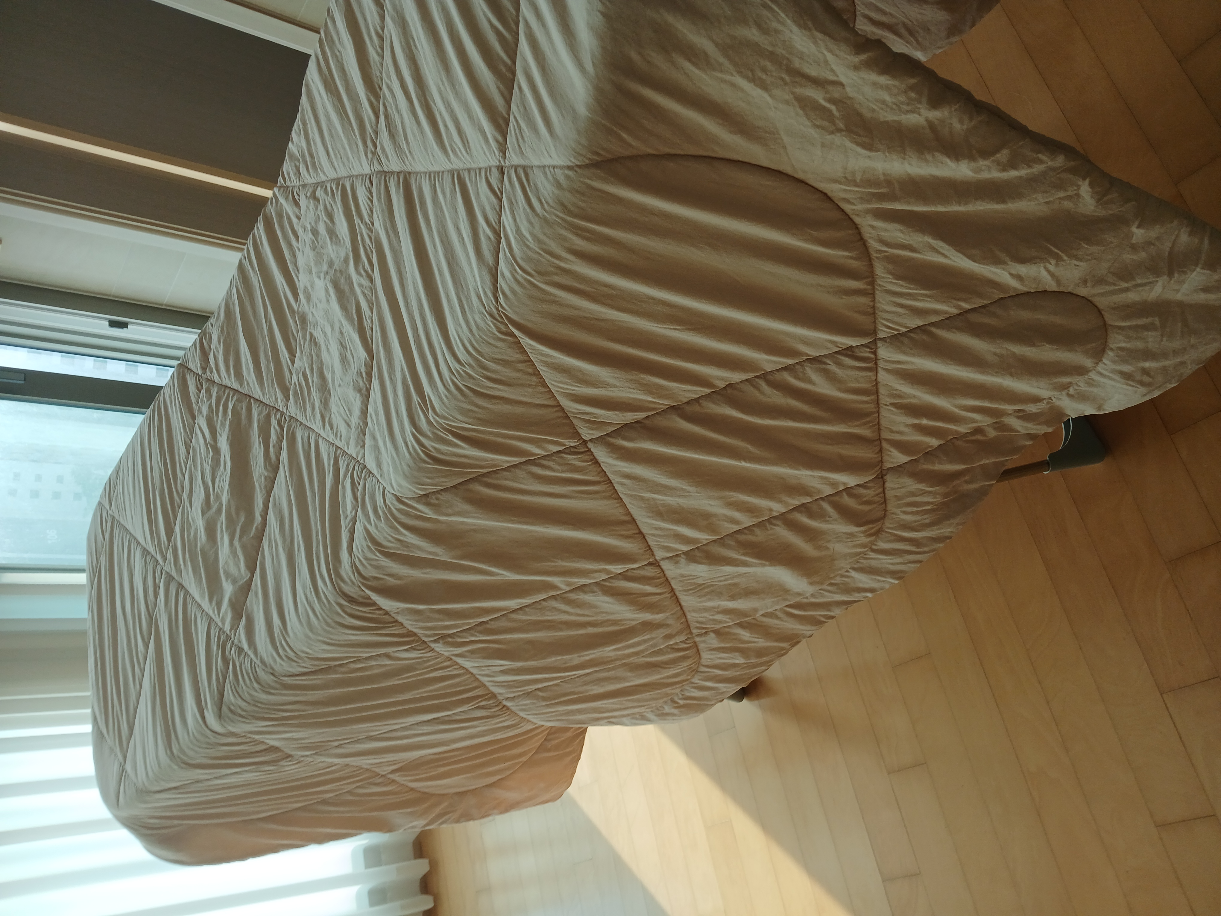 소이밀크 색 편안하고 분위기 있습니다 이불의 촉감은 부드럽긴 하나 윤기있는 매끄러움은 아닙니다 그래서 좀더 고급진 느낌이 듭니다