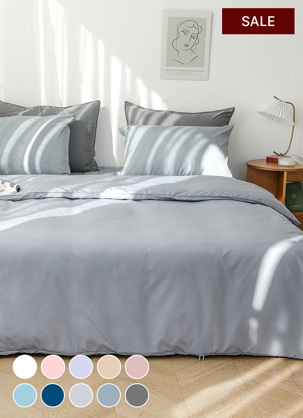 원래 침구는 그레이&차콜 색만 썼는데 네이비가 너무너무 예뻐서 처음으로 그레이계열 아닌 침구를 사봤는데 엄청 만족해요:)