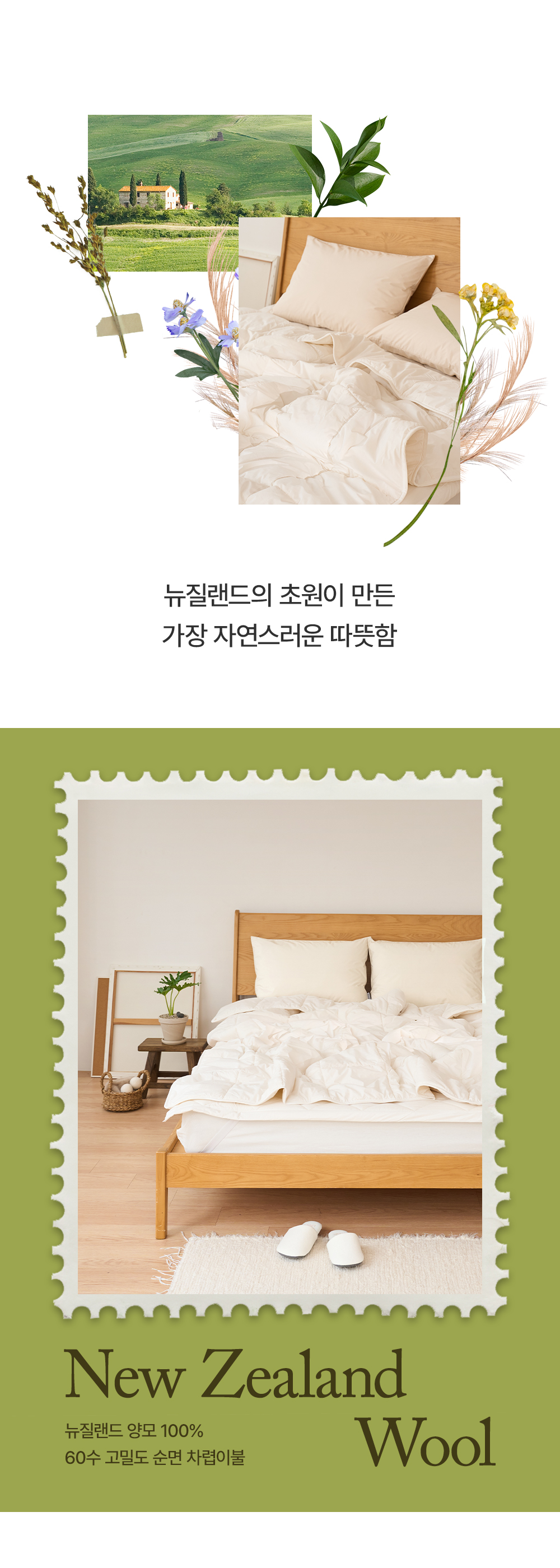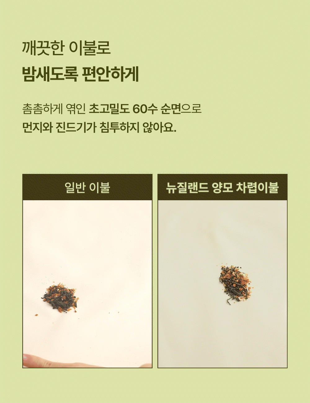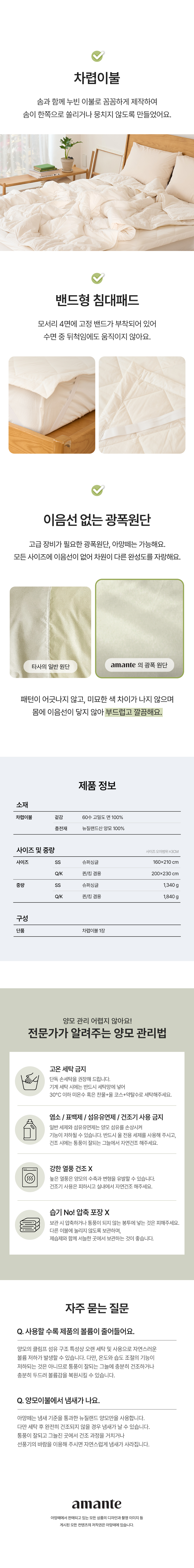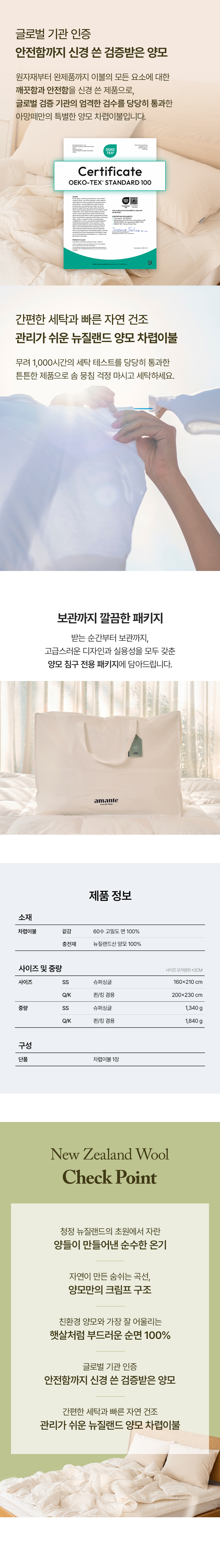 뉴질랜드 양모 100% 60수 고밀도 순면 차렵이불 SS/Q