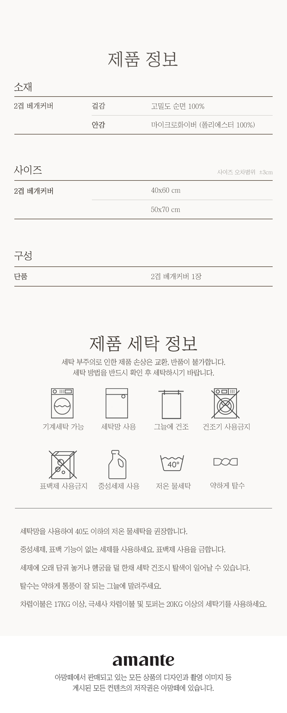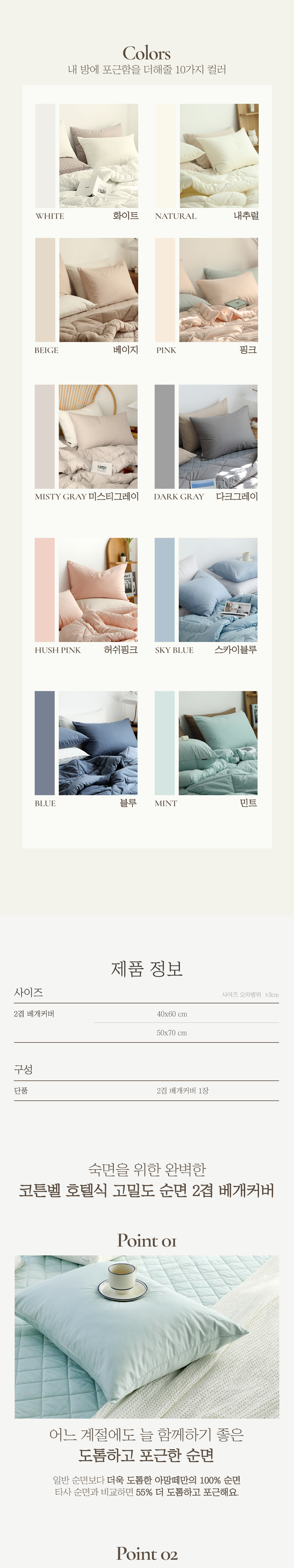 사박사박 고밀도 순면100% 코튼벨 베개커버 40x60/50x70 10colors