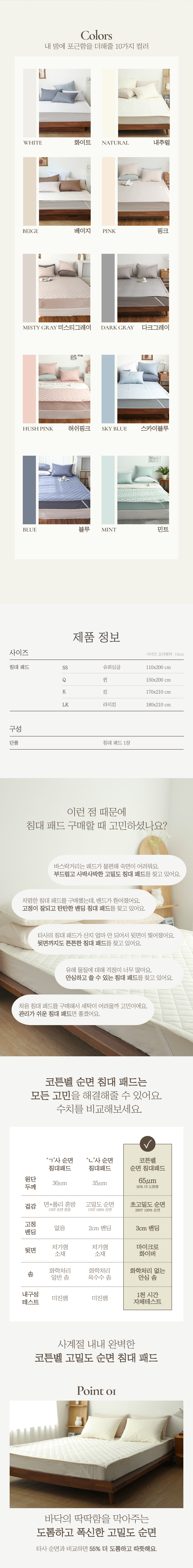 코튼벨 40수 고밀도 면 고정밴드 침대패드 SS/Q/K/LK 10colors
