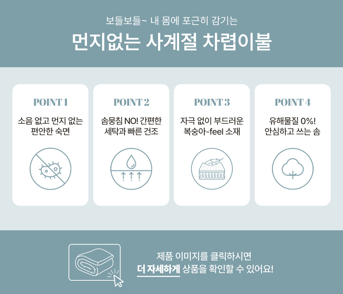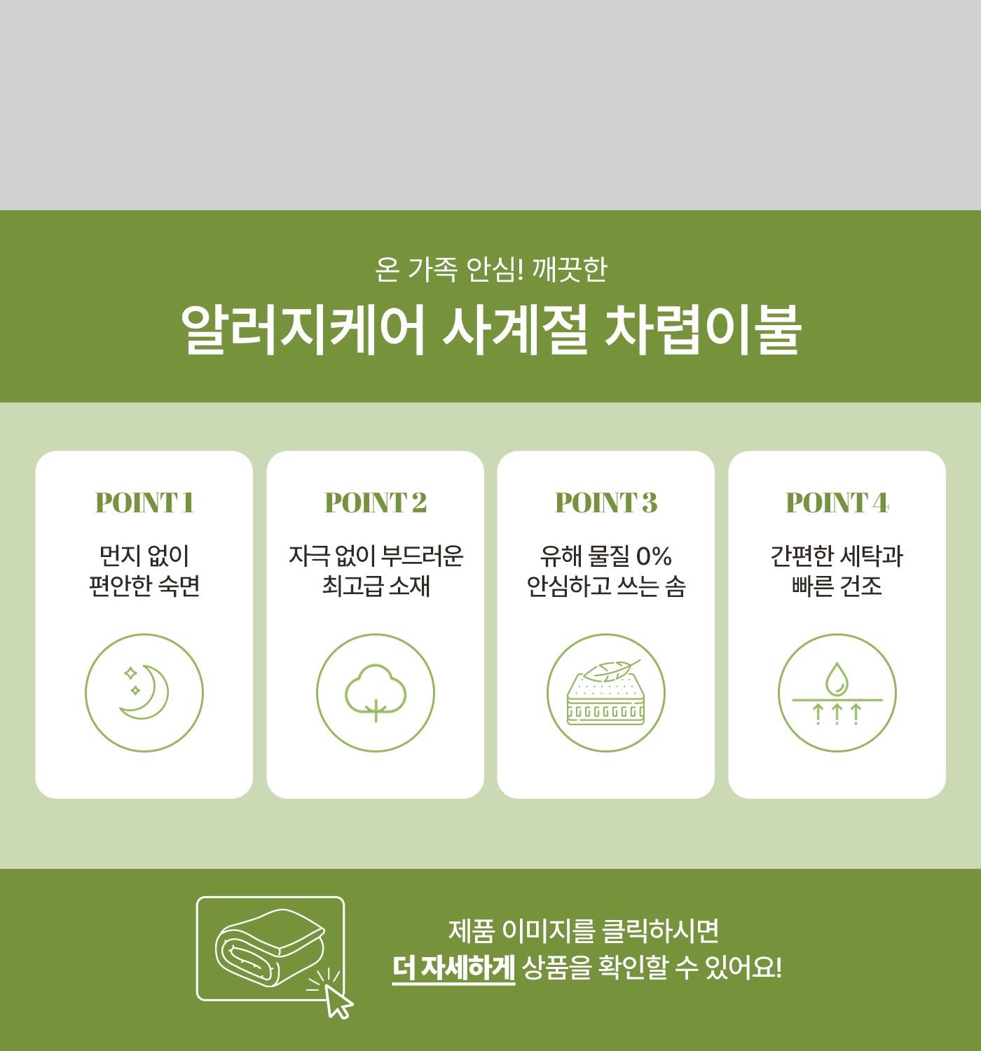 먼지없이 부드러운 알러지케어 순면 차렵이불 SS/Q/K