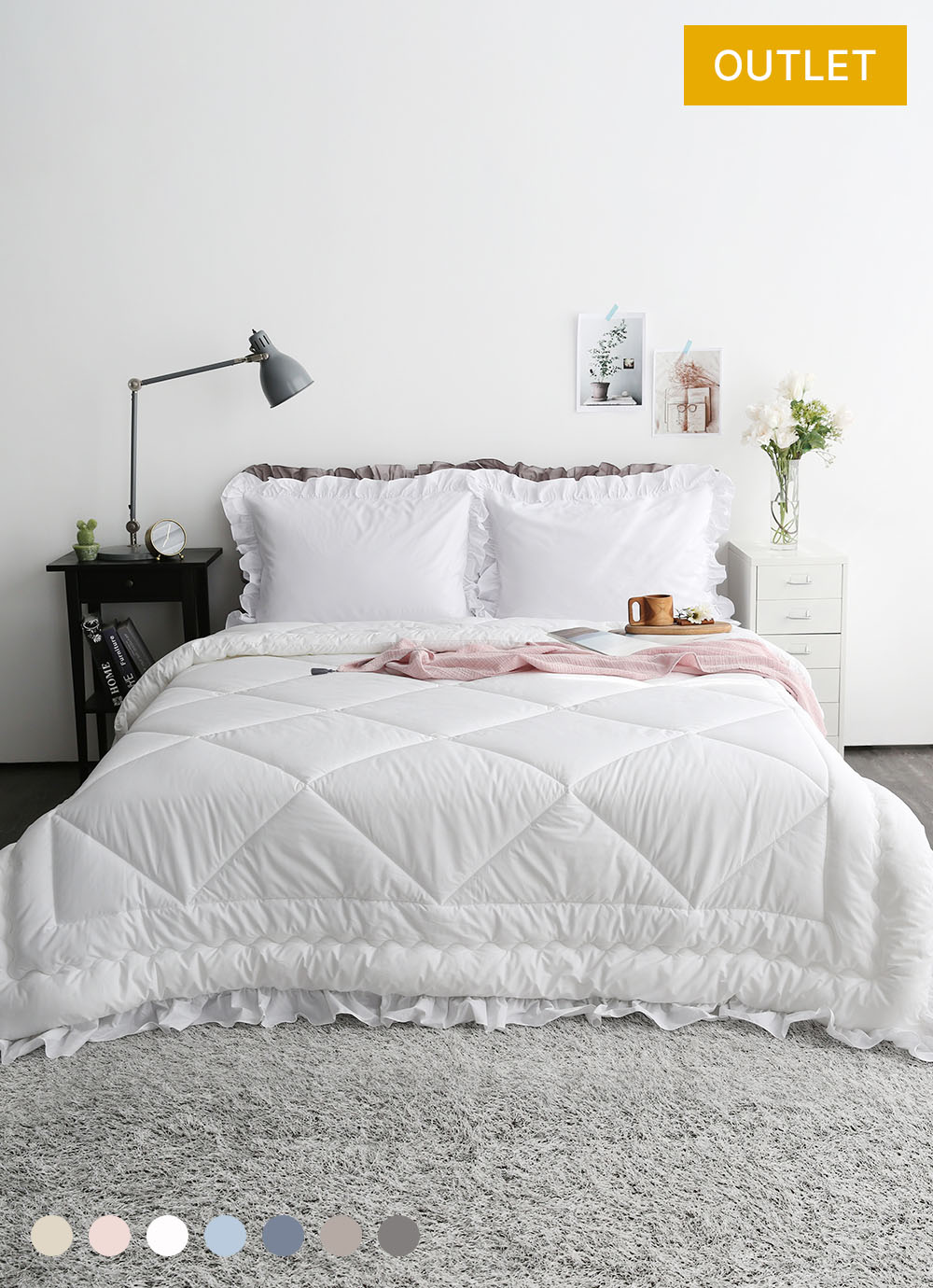 코튼벨 40수 고밀도 순면 프릴 차렵이불 SS/Q 7colors