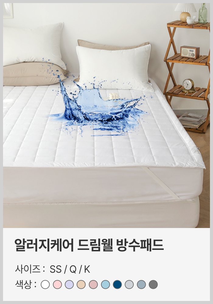 먼지없이 부드러운 알러지케어 방수 순면 고정밴드 침대패드
