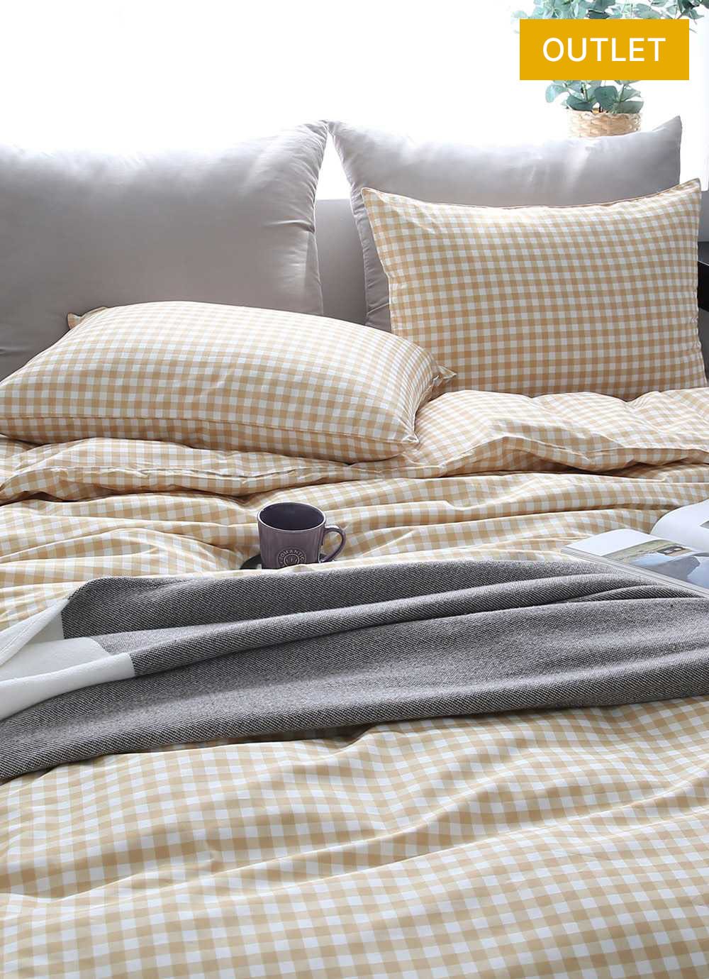 욜로 40수 고밀도 면 홑겹 이불커버 베개세트 베이지 SS/Q