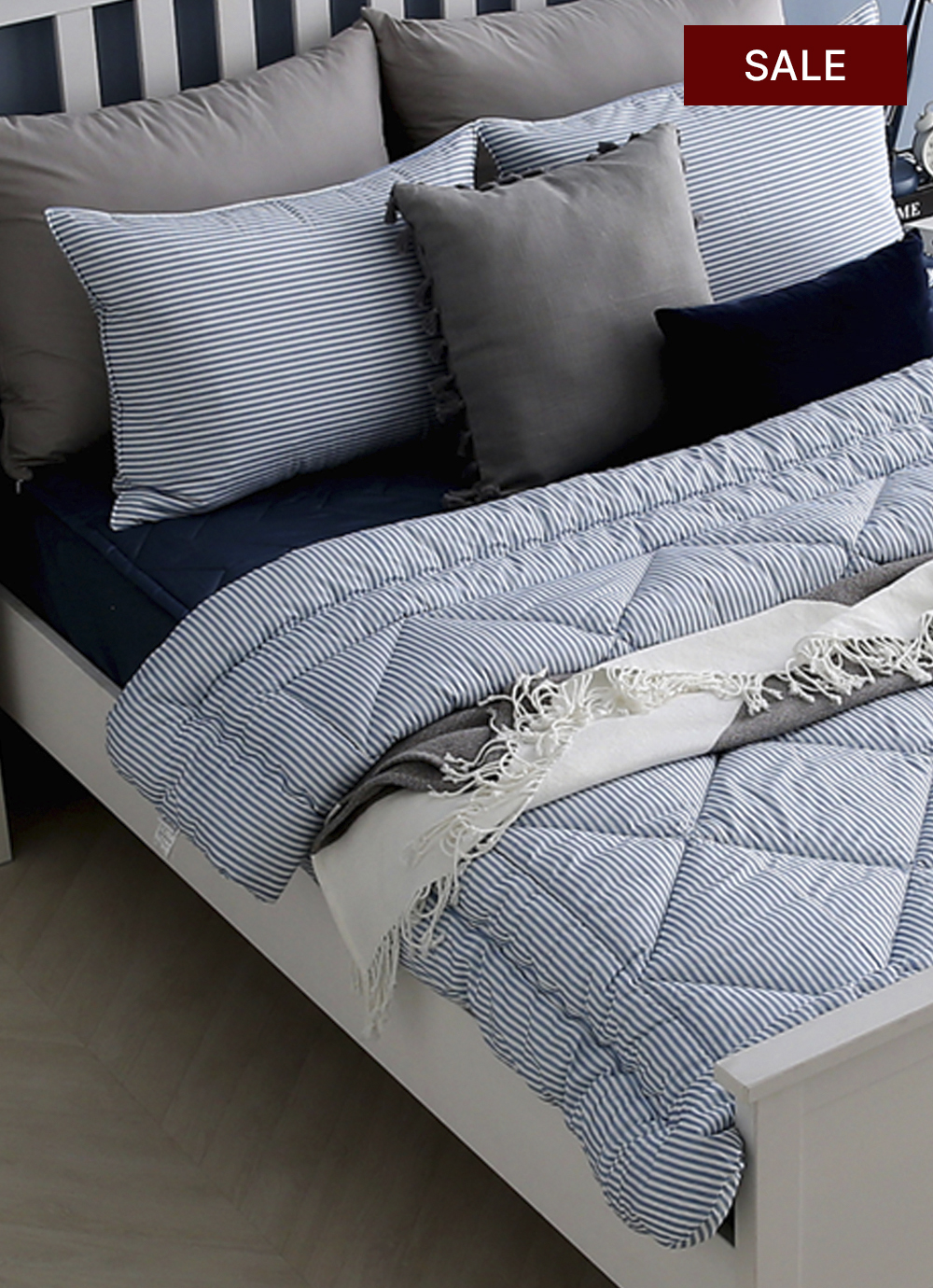 딘딘 40수 고밀도 면 차렵이불 세트 블루 SS/Q/K