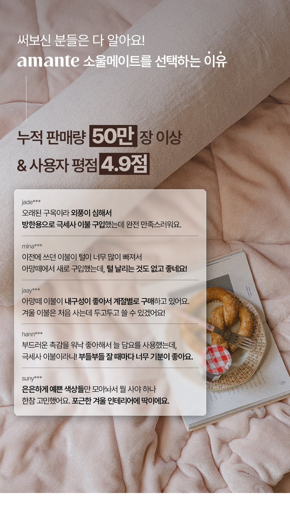 아망떼 이불은 계속 재구매할정도로 품질은 보장되네요~