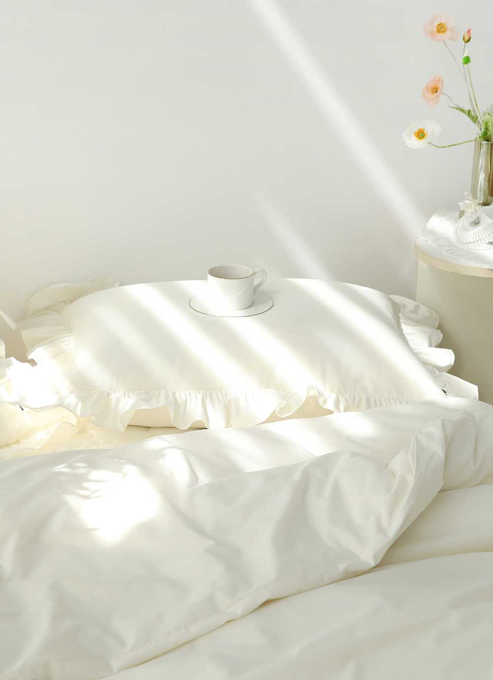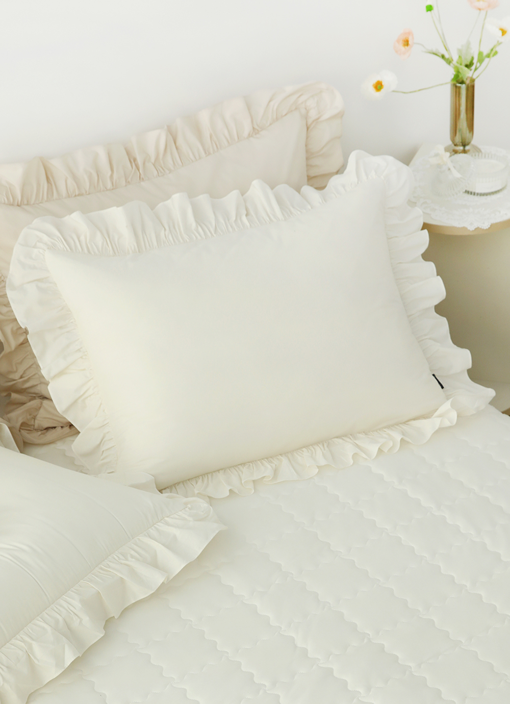 광목이라 이불과 잘 어울려요. 프릴이 이쁘고 튼튼해 보여서 좋아요. 빨았더니 좀 구겨지긴 했지만 질리지않고 유행도 타지 않아 맘에 들어요.