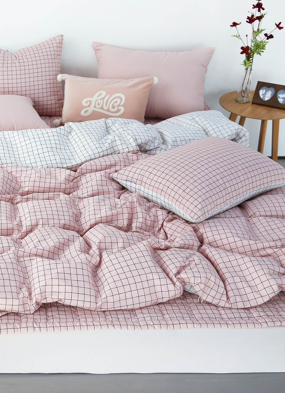 그리드 40수 고밀도 면 홑겹 이불커버세트 SS/Q/K
