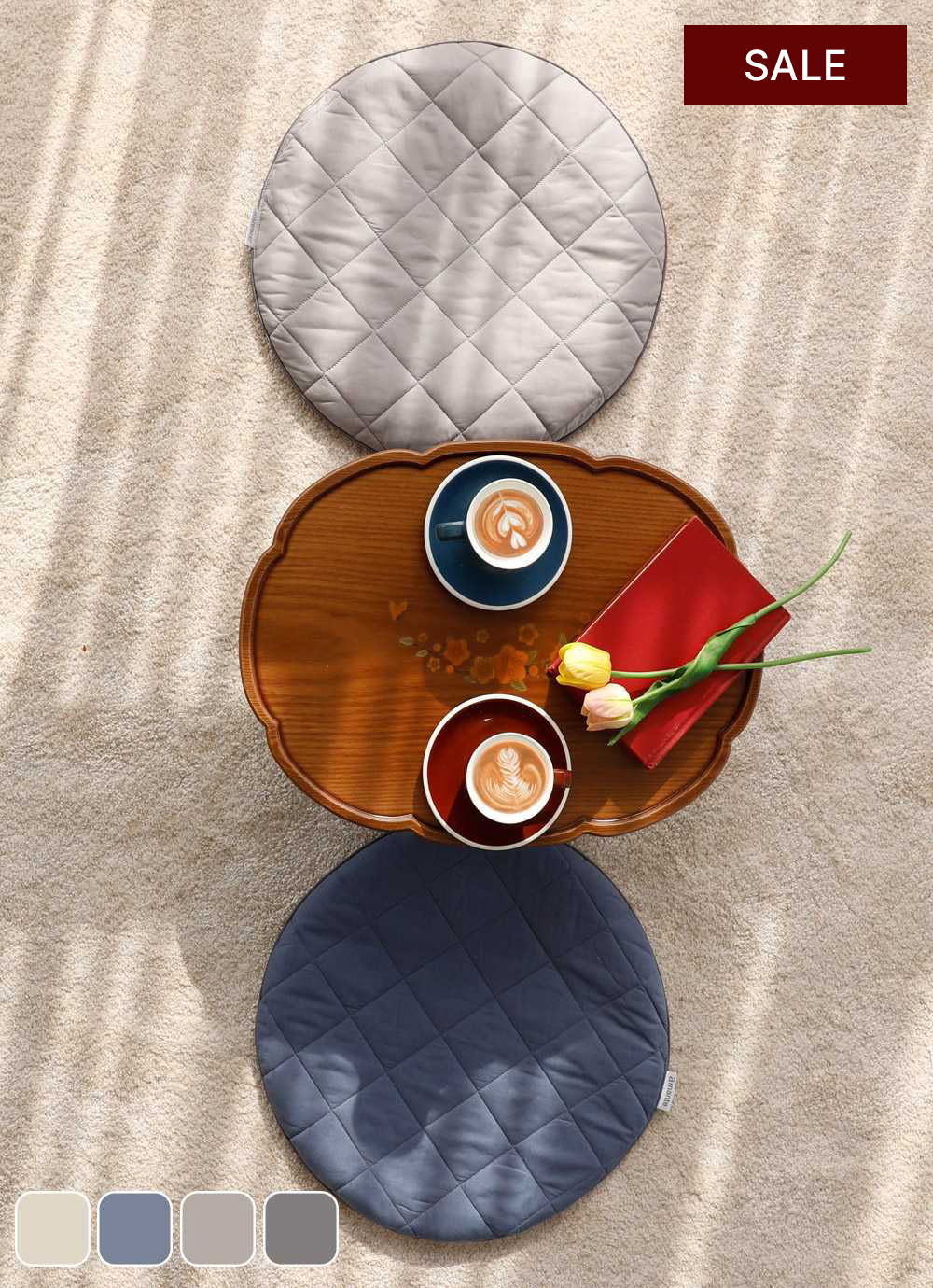 먼저 타사의 원형 방석들 보다 사이즈가 커서 갖고 있는 의자에 딱맞네요. 쿠션감이 전혀 없는 식탁의자에 놓았더니 적당한 두께의 방석이라 적당히 푹신한 점이 너무 좋아요. 밀림방지 천이라서 밀림이 전혀 없어서 편한게 느껴집니다. 파스텔 톤의 은은한 색감이라 마음에 듭니다. 친환경 천으로 먼들어졌다니 더욱 믿음이 갑니다. 실제로 사용전에 세탁을 했는데, 먼지가 안나서 정말 좋았어요.