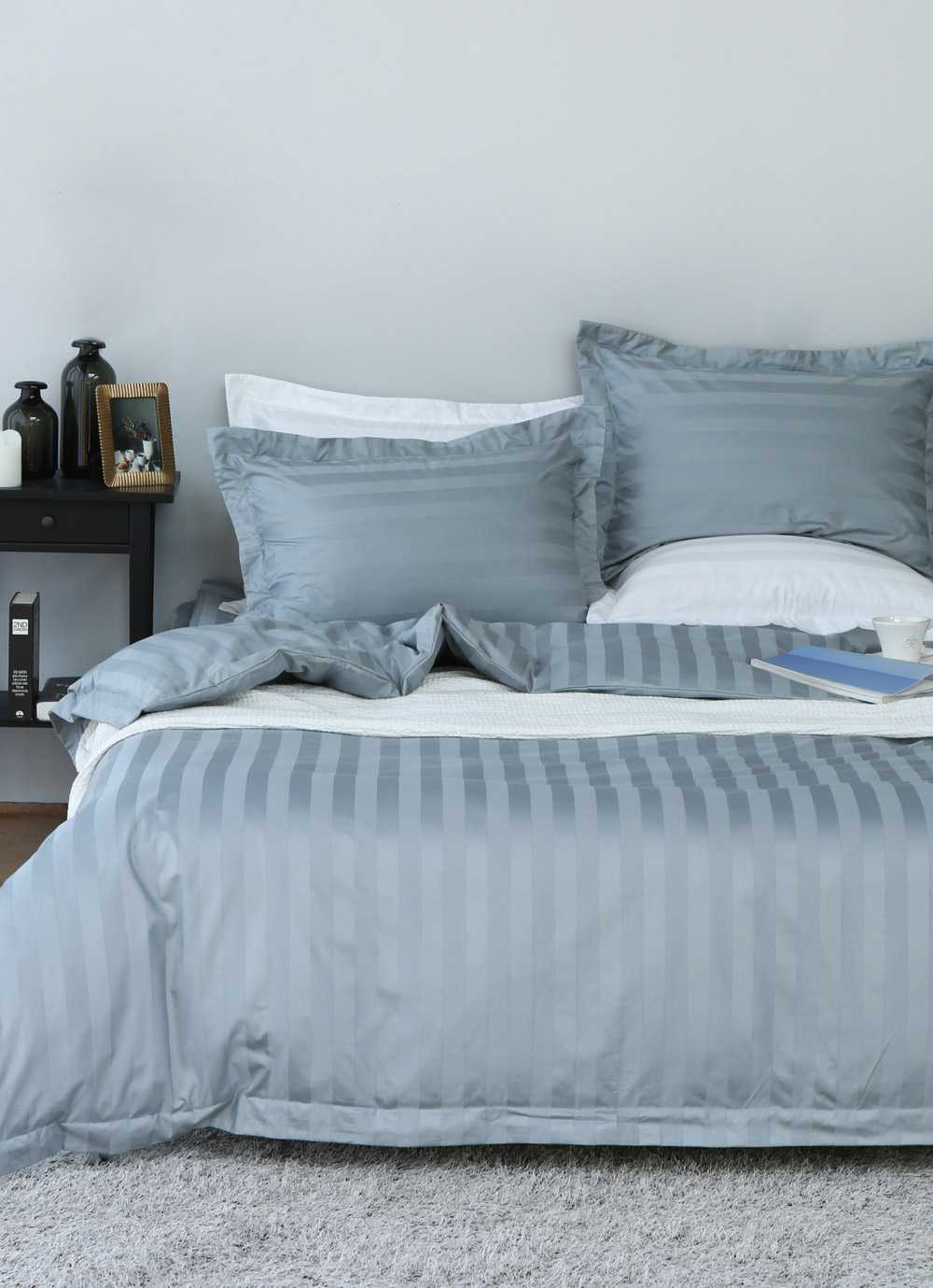 페니로얄 60수 샤틴 도비 면 홑겹 이불커버 베개세트 쉐도우블루 SS/Q/SK