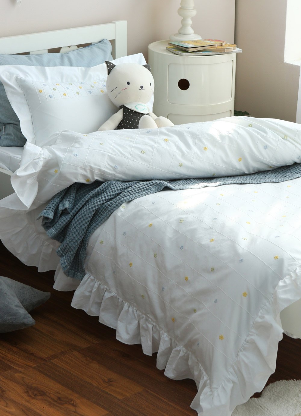 쁘띠도트 면 자수 누빔 이불커버 베개세트115x145
