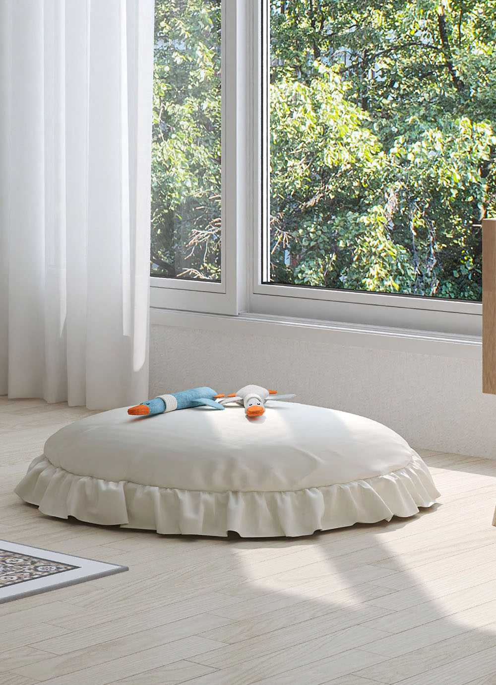 케이시 광목 프릴 원형대방석 커버/ 솜포함