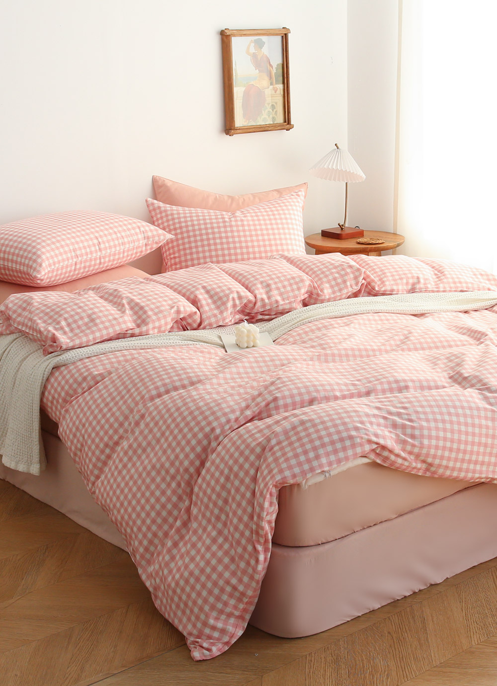 욜로 40수 고밀도 면 홑겹 이불커버 베개세트 핑크 SS/Q