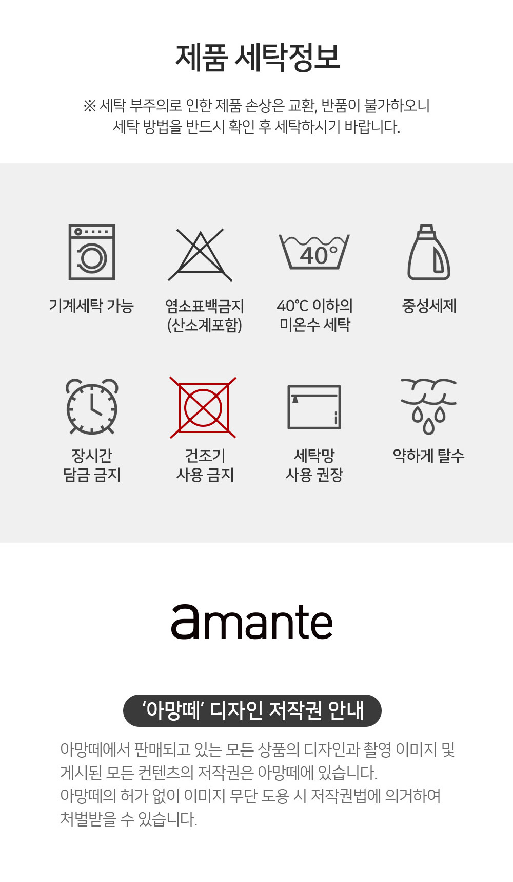 세탁방법 및 취급 시 주의사항