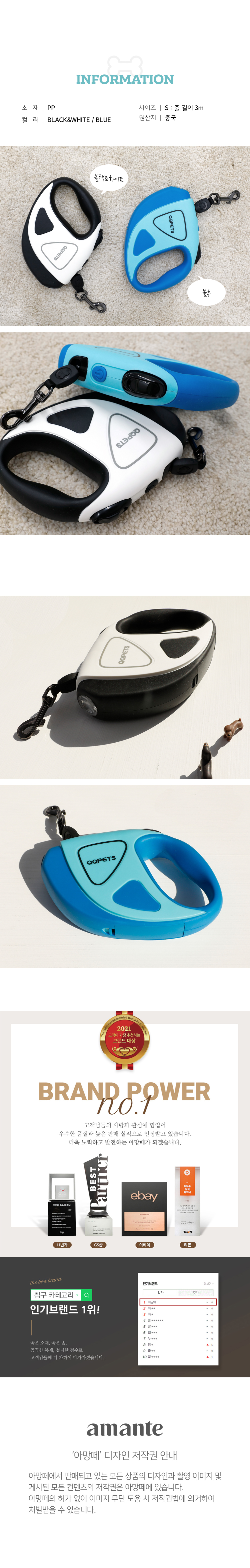 펫 LED 자동리드줄 2colors
