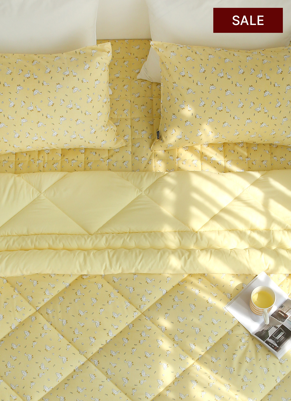 직접 받아보니 상아색 바탕의 오리무늬입니다.
