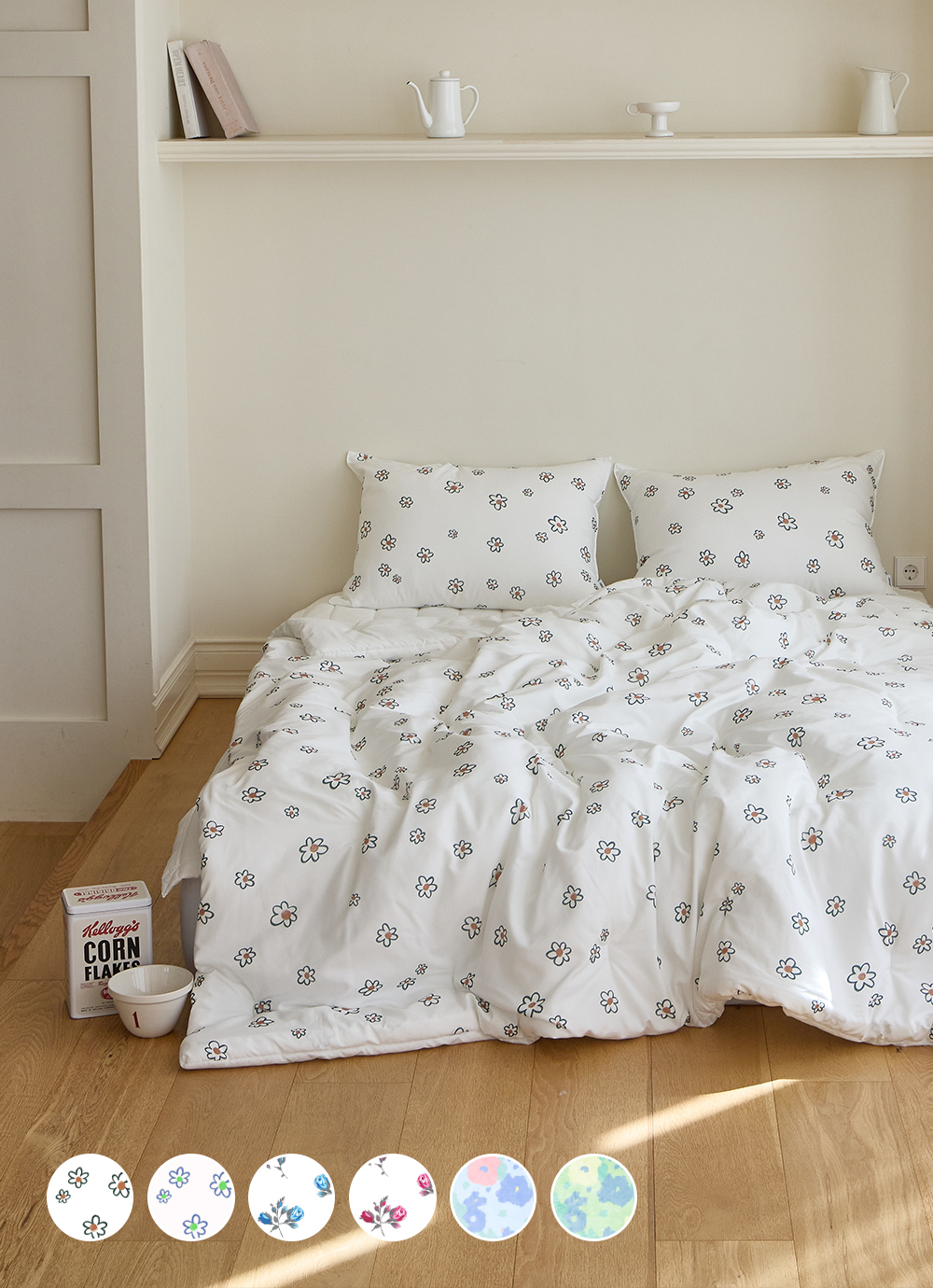 사진보다 실물이 훨씬 예뻐요ㅠㅠ 플라워 패턴이 너무 촌스럽지 않고 꼭 봄 같아서 방 분위기가 달라졌어요ㅎ