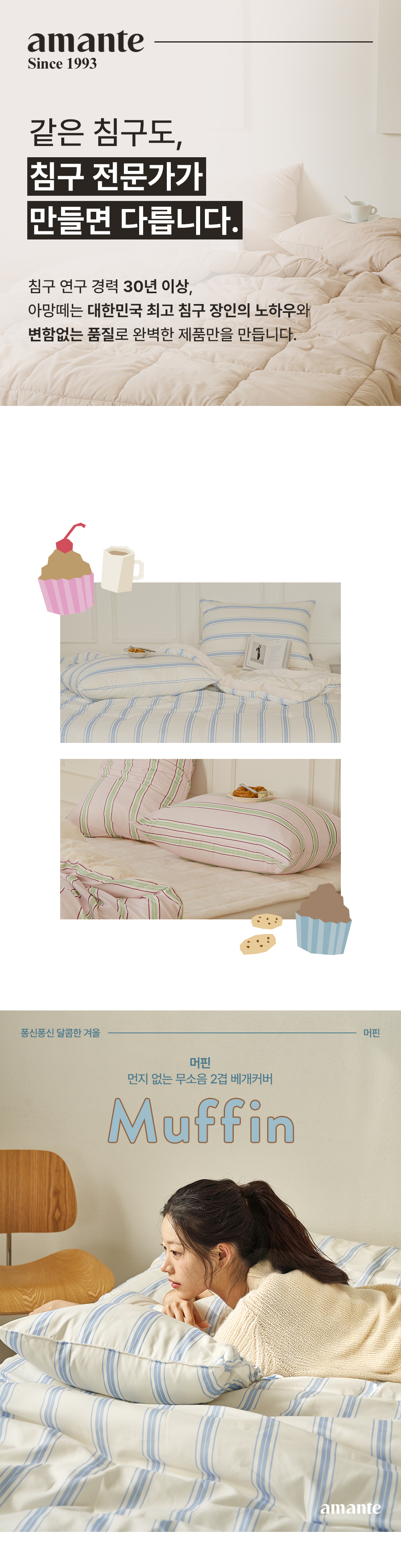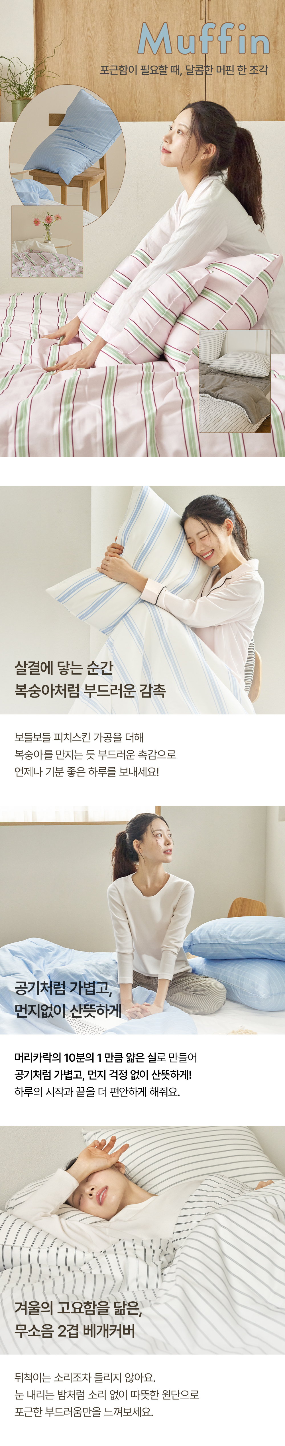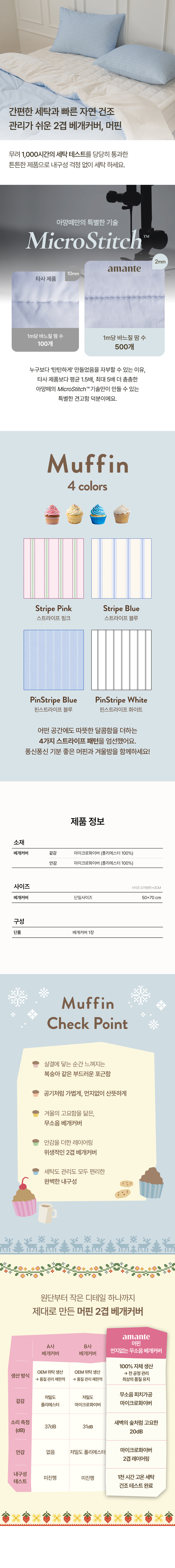 머핀 먼지없는 무소음 2겹 베개커버 50x70 4color