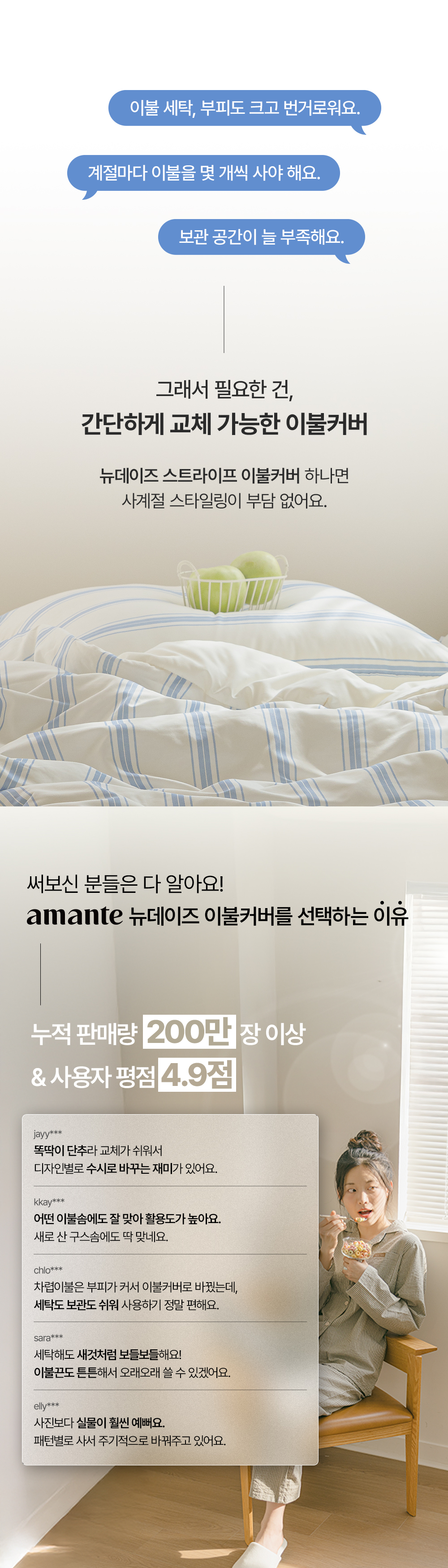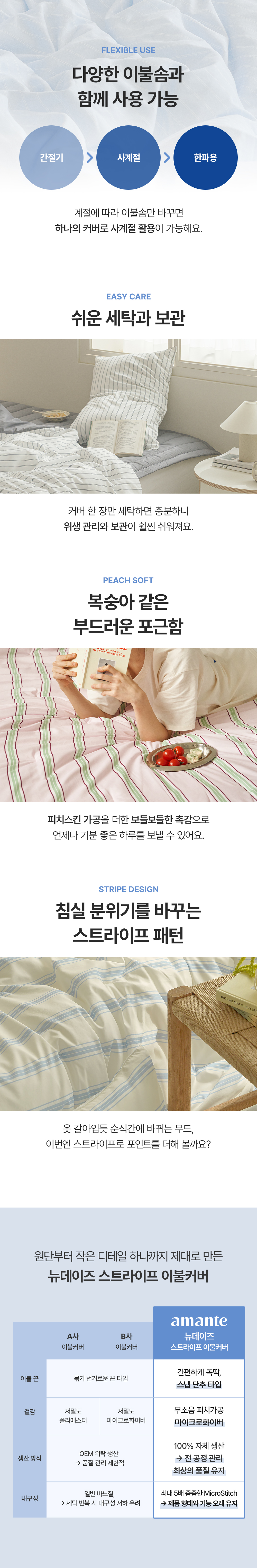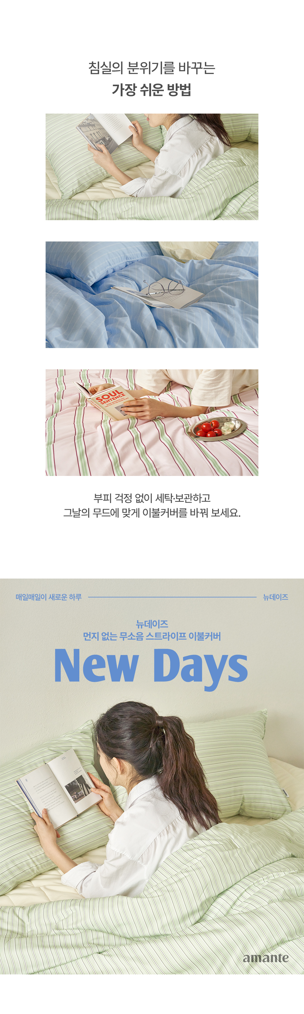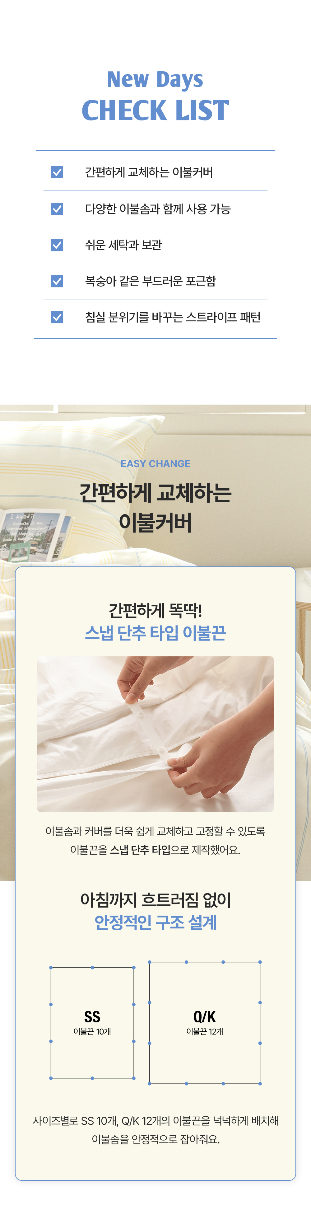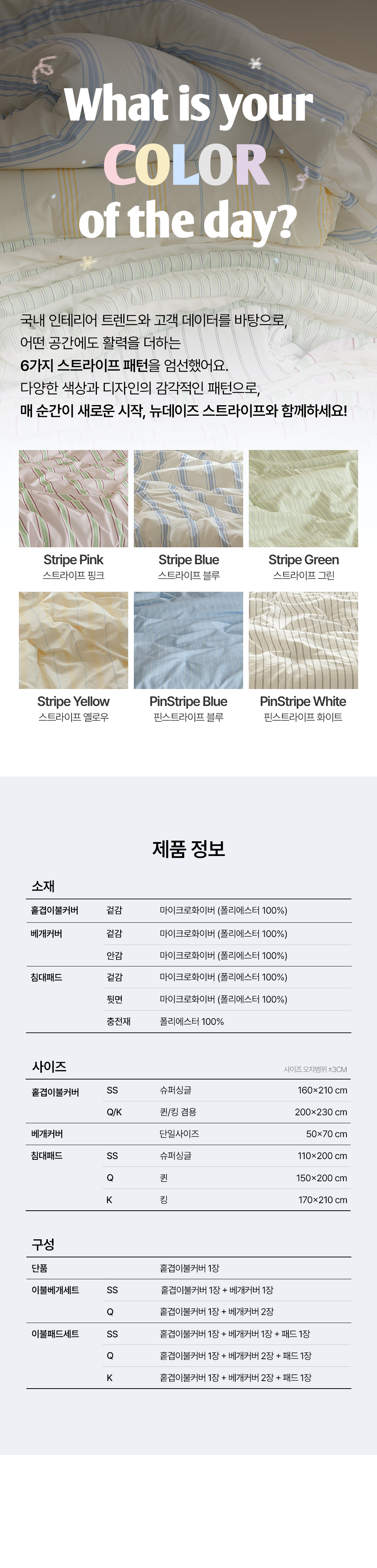 뉴데이즈 스트라이프 먼지없는 무소음 홑겹이불커버 SS/Q/K 6color