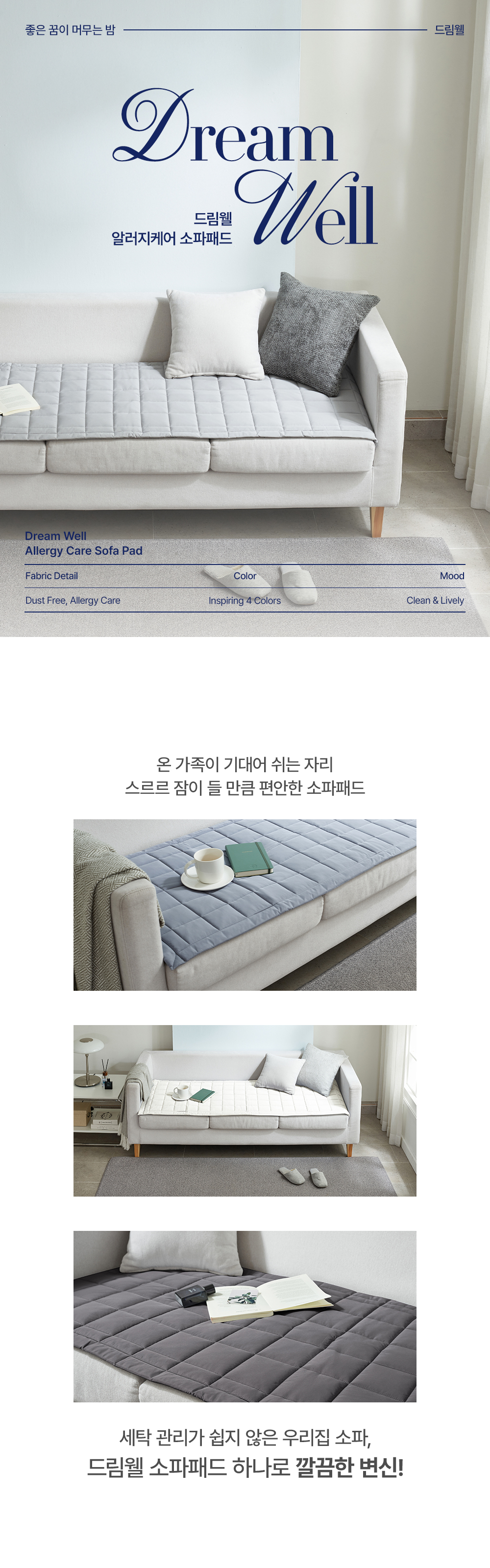 알러지케어라서 그런지 먼지 덜 붙어서 너무 좋아요! 컬러도 깔끔하고 안 밀려서 자취방 소파에 딱이에요ㅎㅎ