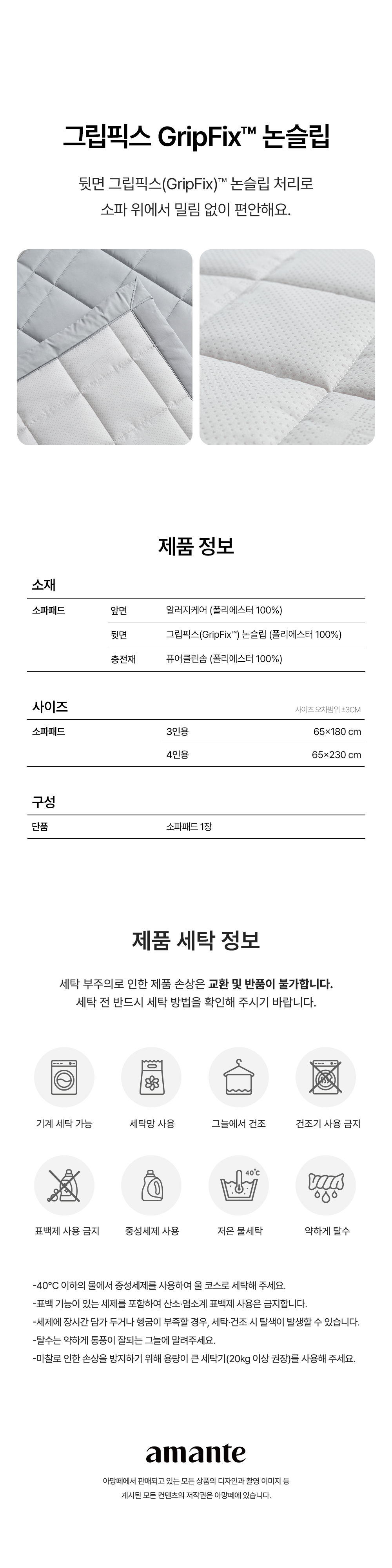 세탁방법 및 취급 시 주의사항