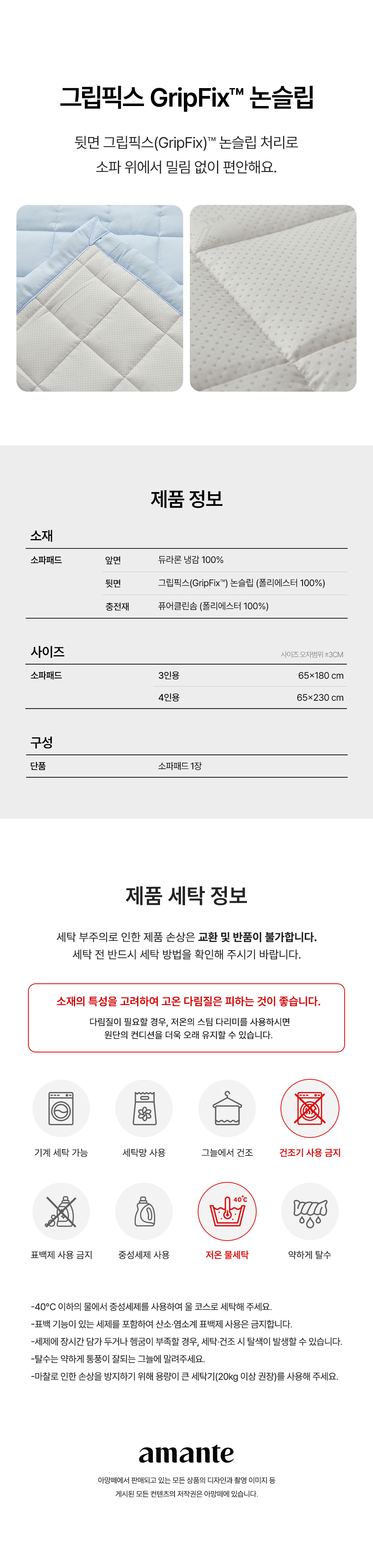 세탁방법 및 취급 시 주의사항