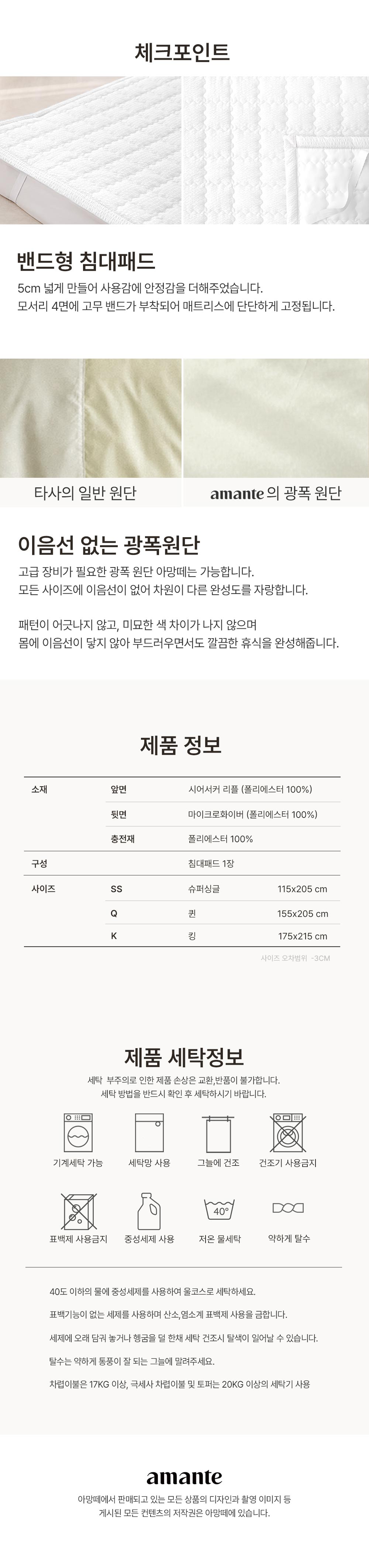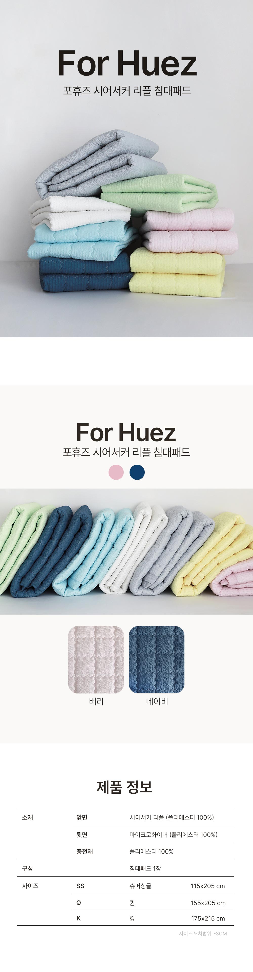 포휴즈 시어서커 리플 여름 침대패드 SS/Q/K 2colors