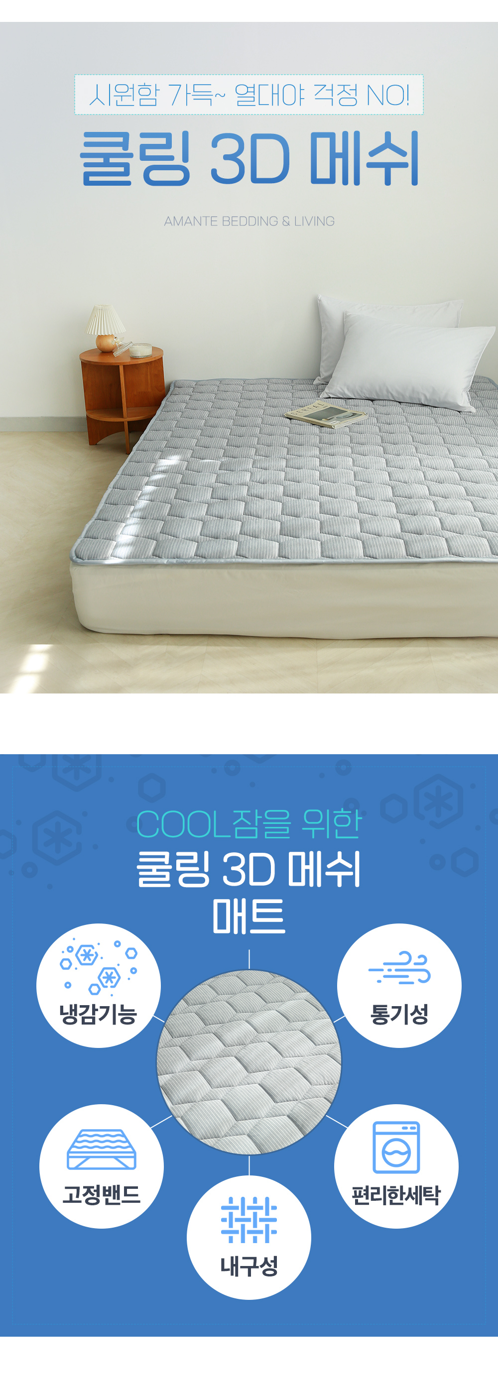 쿨링 3D 에어메쉬 고정밴드 침대패드 S/Q