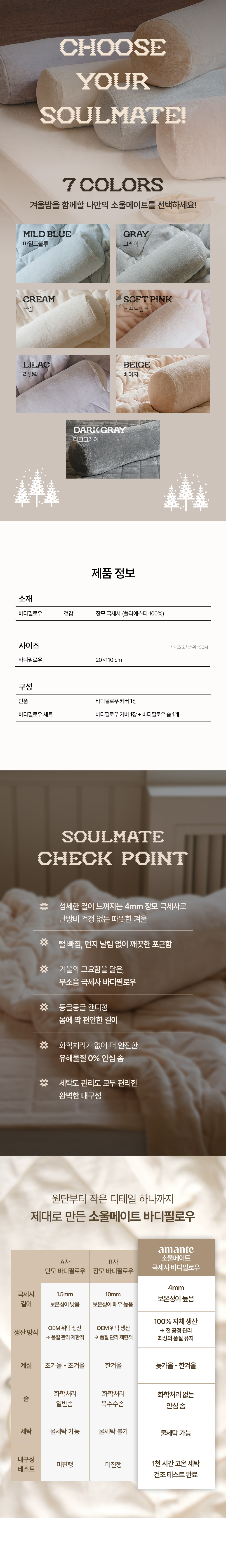 [1+1 특가!] 소울메이트 장모 극세사 롱 바디필로우 7colors