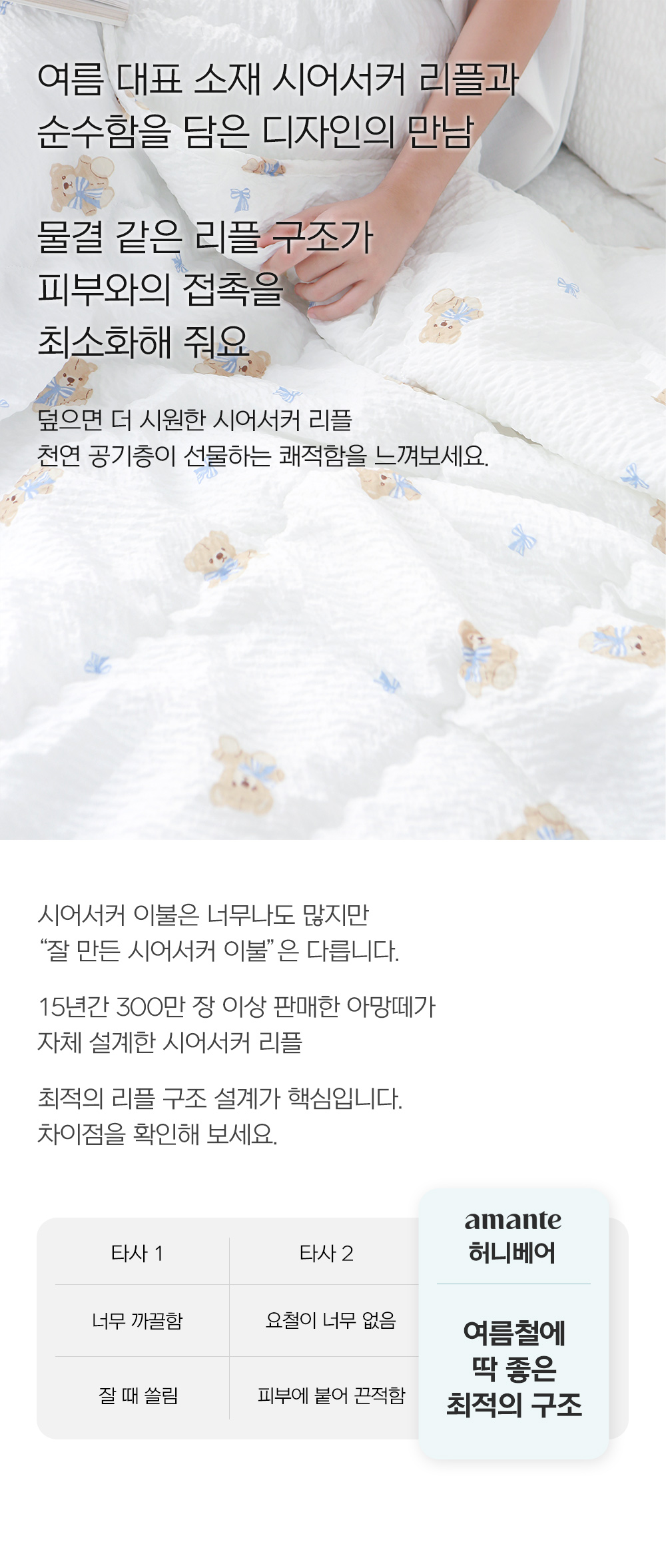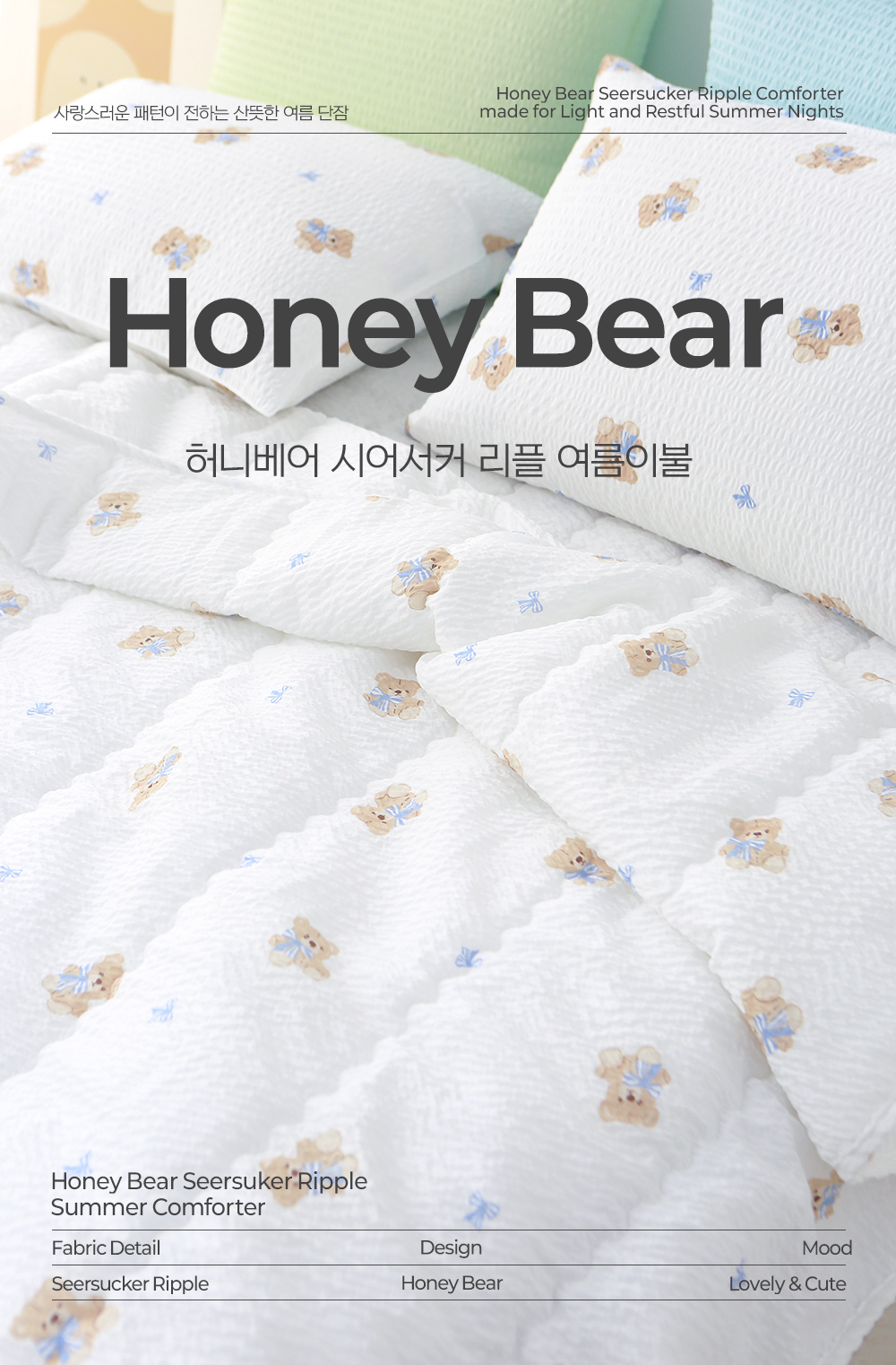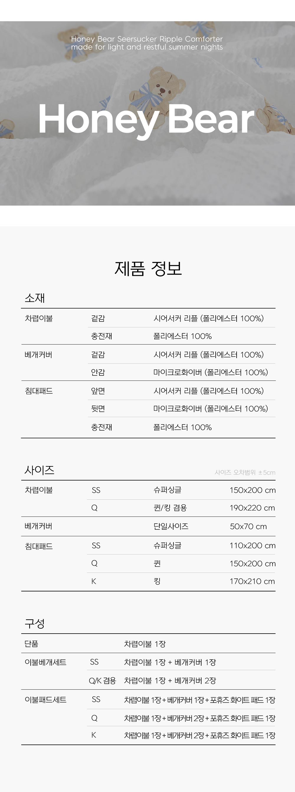 허니베어 시어서커 리플 여름 차렵이불 SS/Q/K