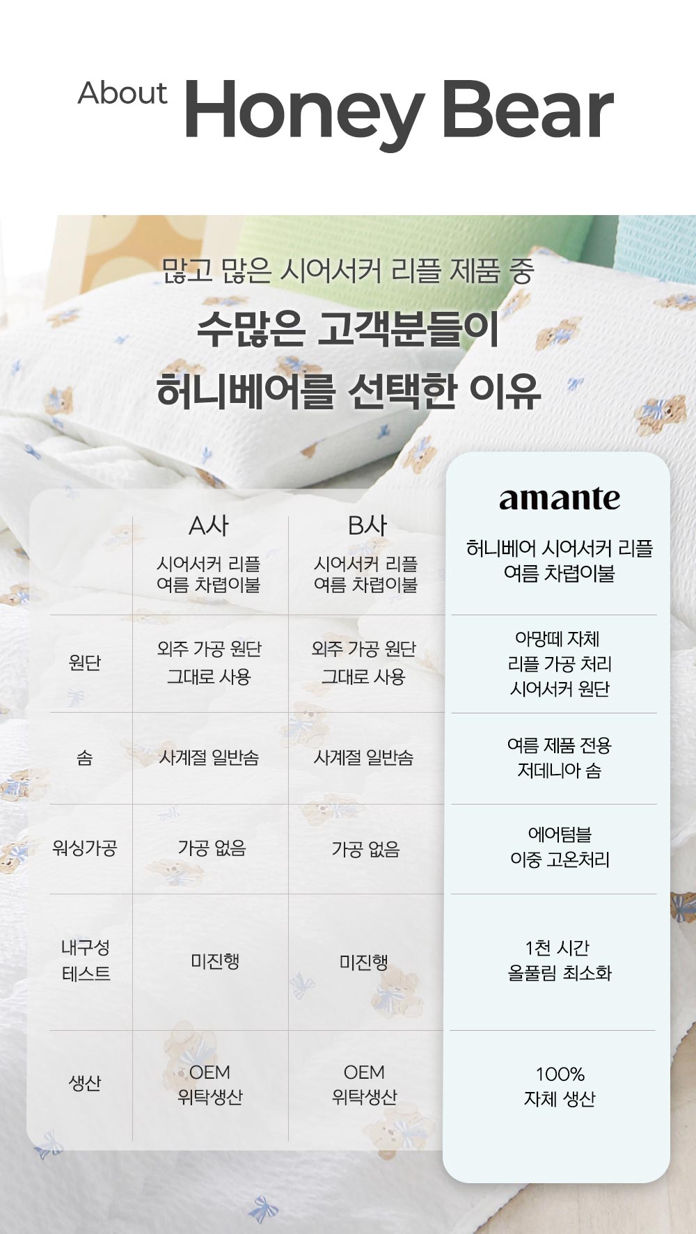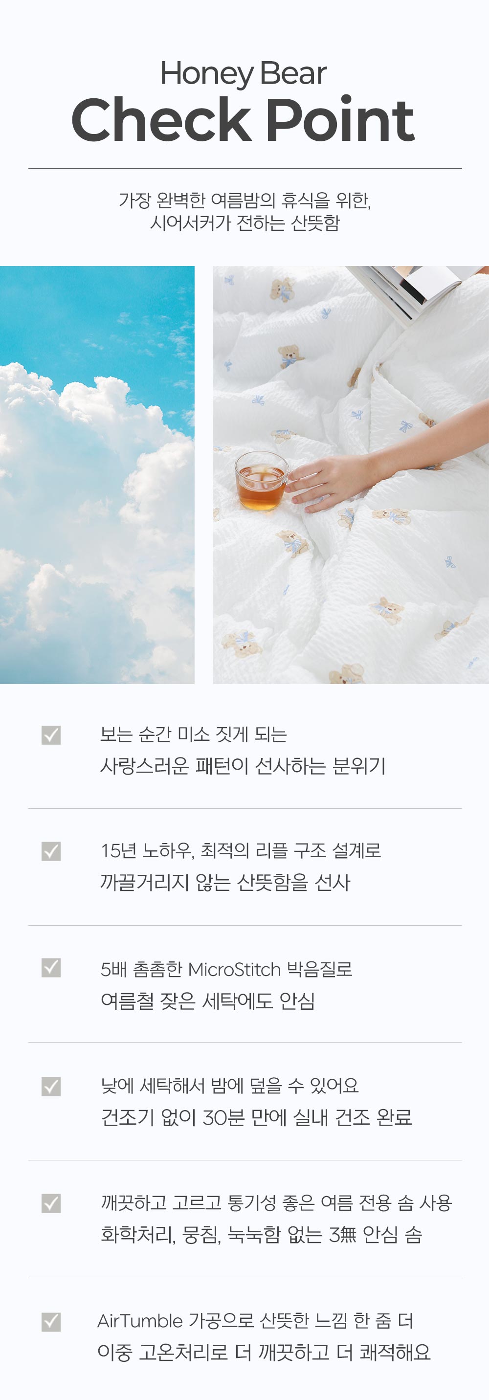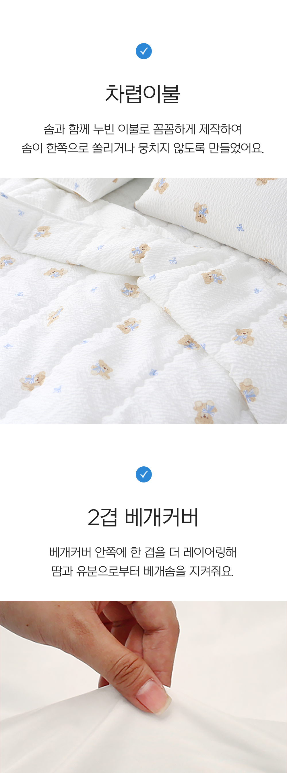 허니베어 시어서커 리플 여름 차렵이불 SS/Q/K