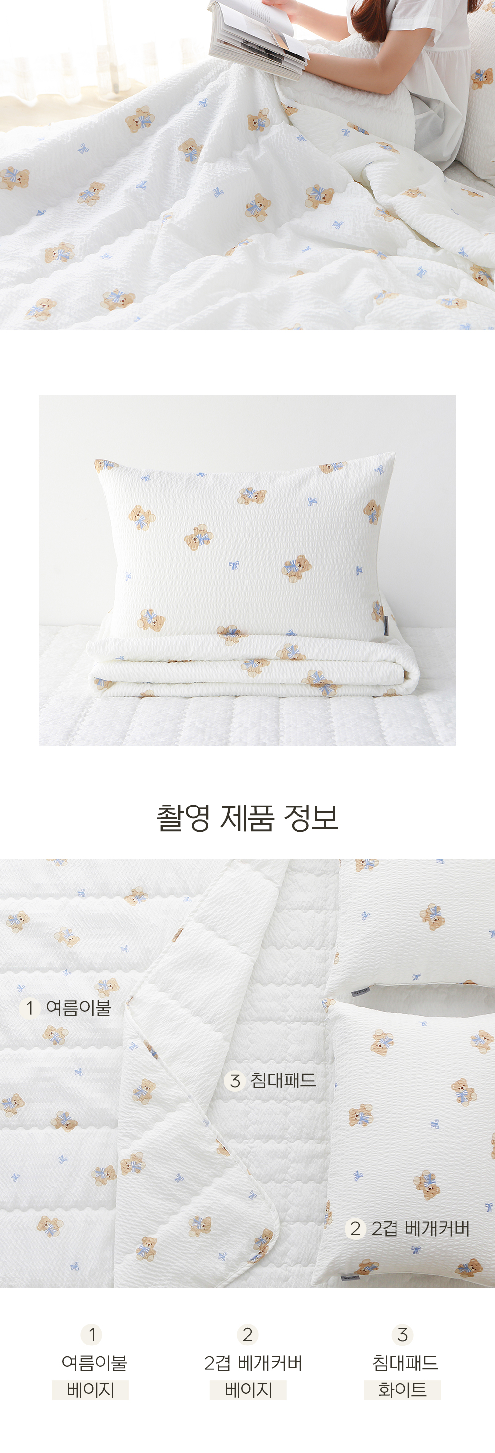 사이즈 및 구성 : Q 이불패드세트(이불x1 베개커버x2 패드x1)