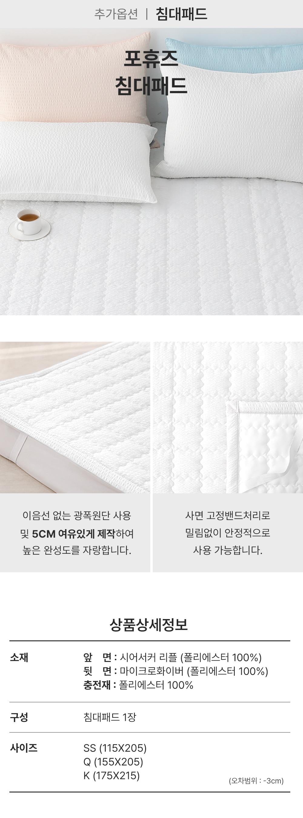 사이즈 및 구성 : Q 이불패드세트(이불x1 베개커버x2 패드x1)
