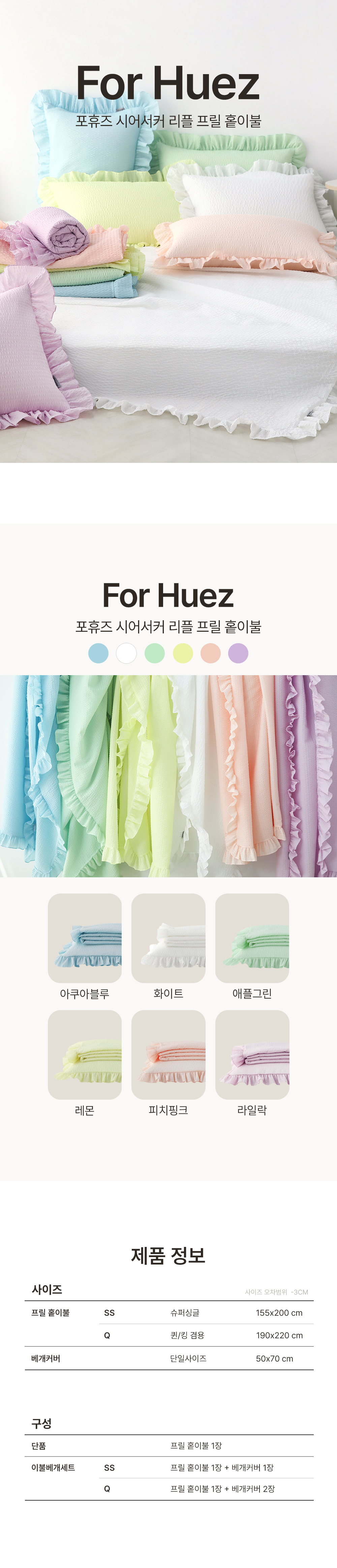 포휴즈 시어서커 리플 프릴 홑이불 SS/Q 6colors