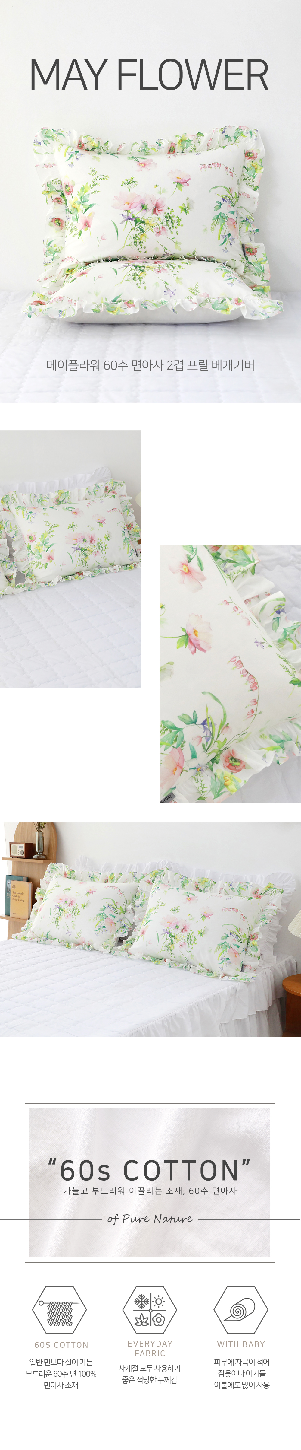 메이플라워 60수 면아사 프릴 베개커버 50x70