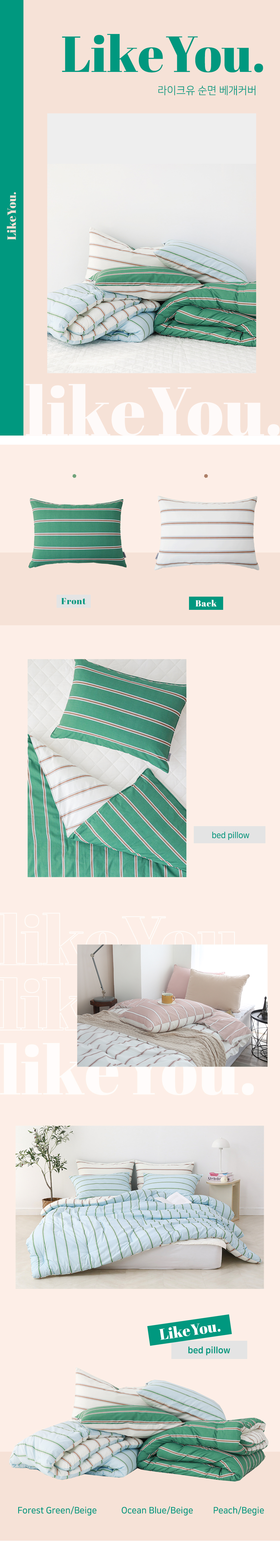 라이크유 순면 2겹 베개커버 40x60/50x70 3colors