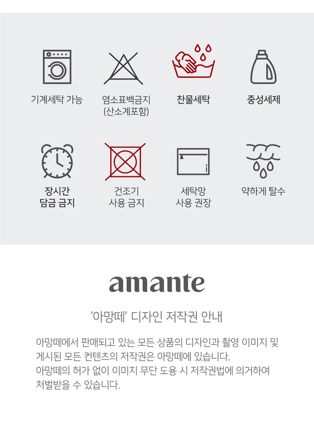 세탁방법 및 취급 시 주의사항