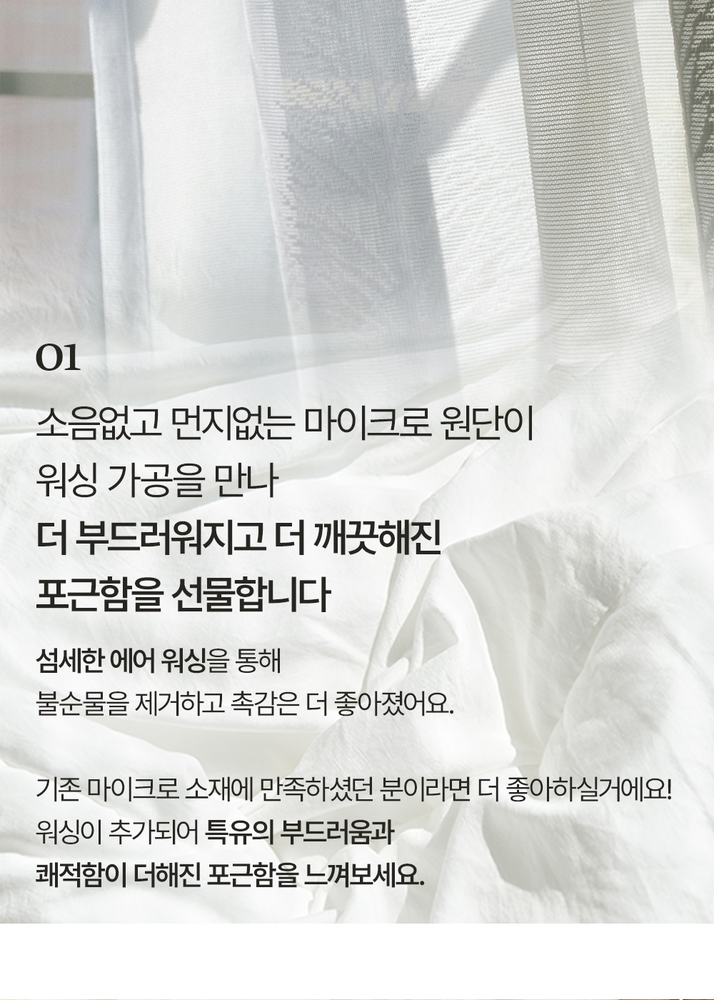 워싱 처리 덕분에 촉감이 부드럽고 고급스러워요~ 세탁해도 형태가 잘 유지돼서 관리하기 편해요