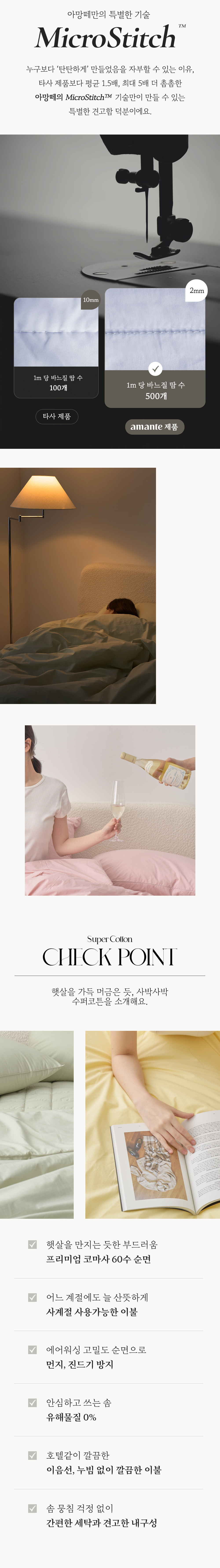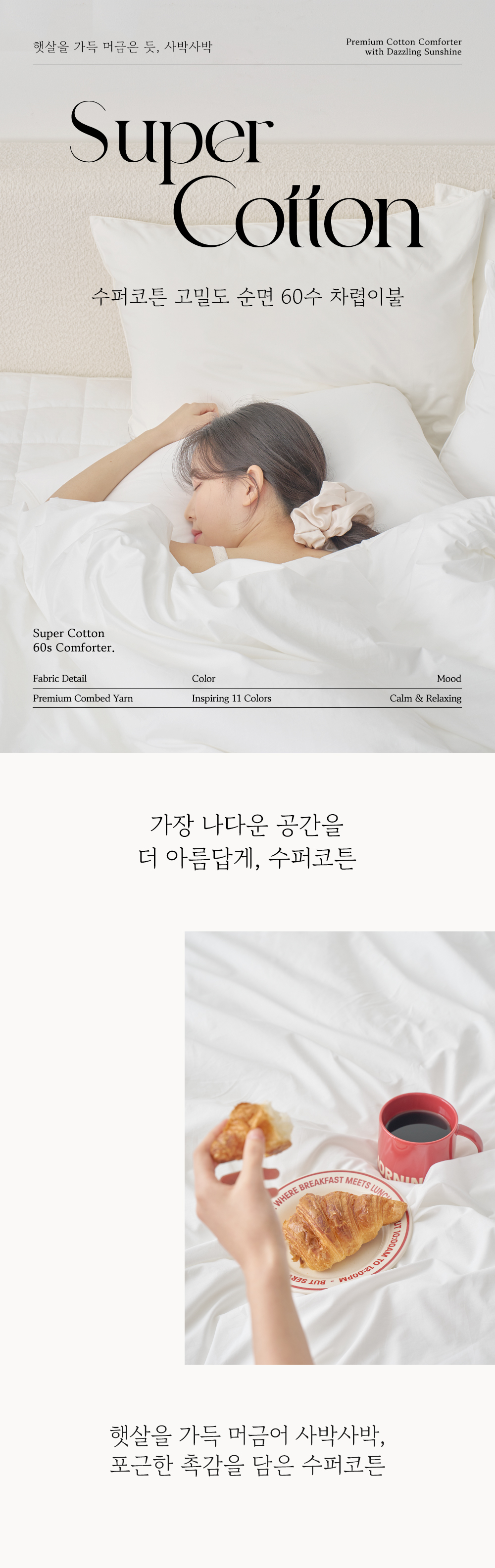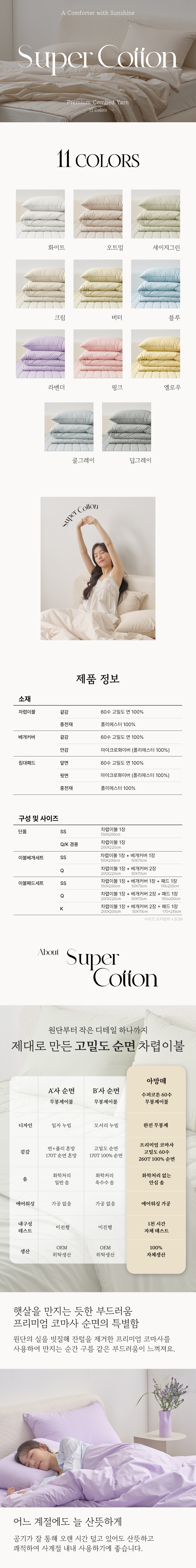 수퍼코튼 60수 고밀도 순면 무봉제 차렵이불 SS/Q/K 11colors