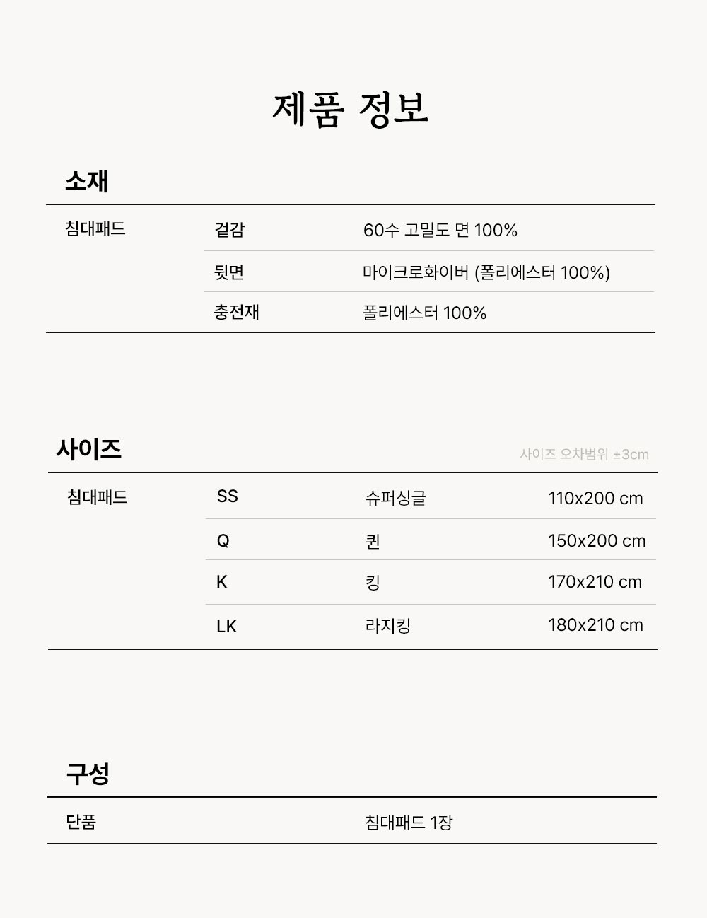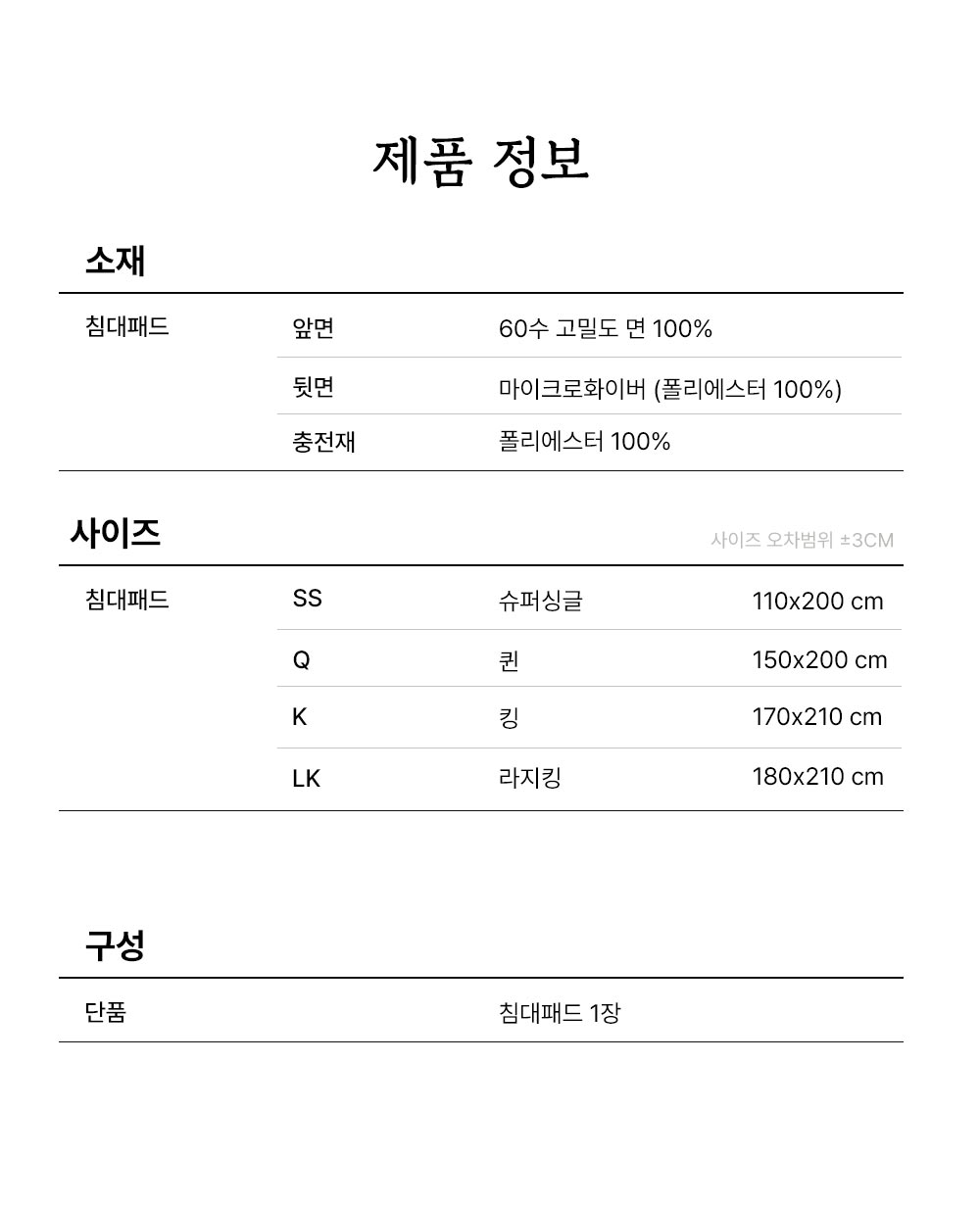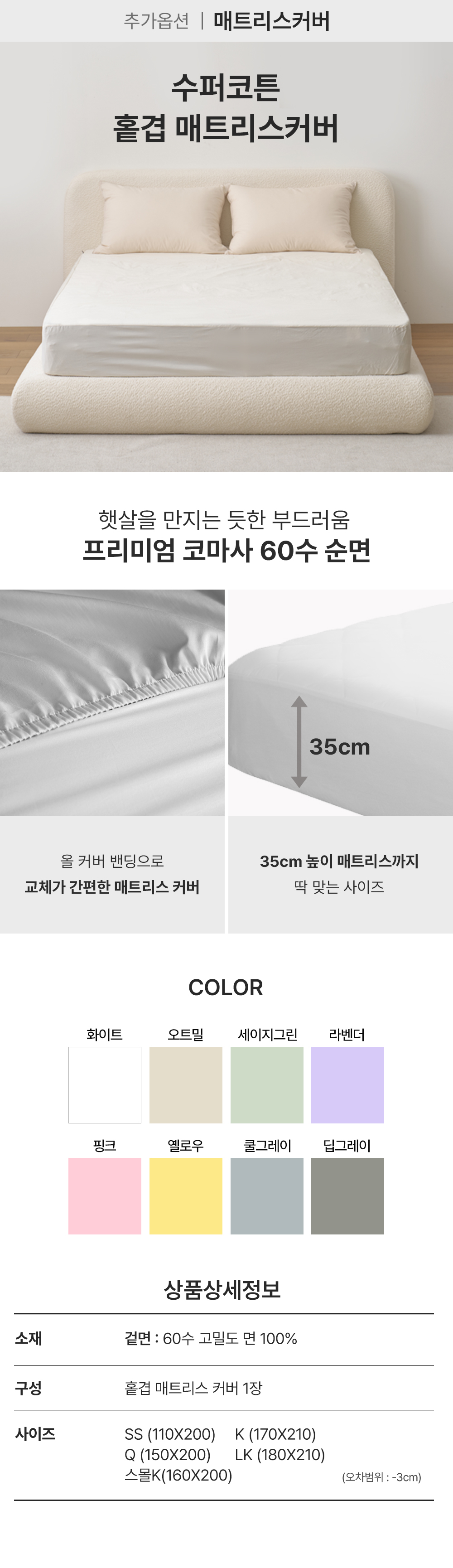 2. 수퍼코튼 홑겹 매트커버