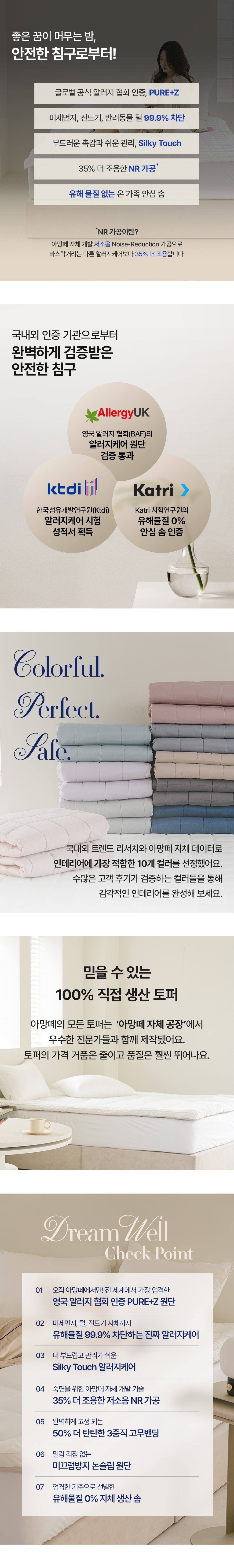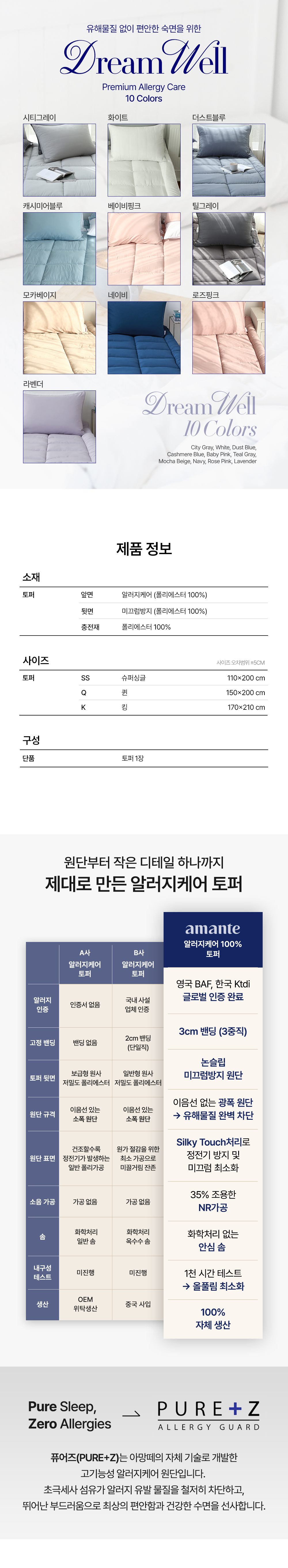 드림웰 알러지케어 고정밴드 토퍼 SS/Q/K 10colors