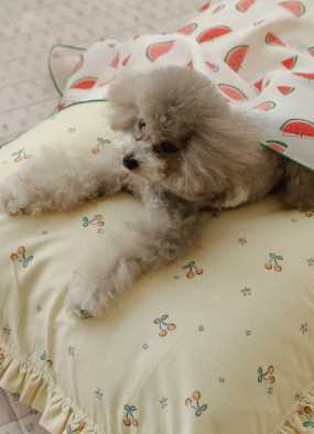 펫 체리체리 순면 프릴 애견방석 옐로우