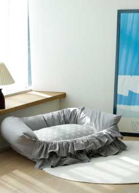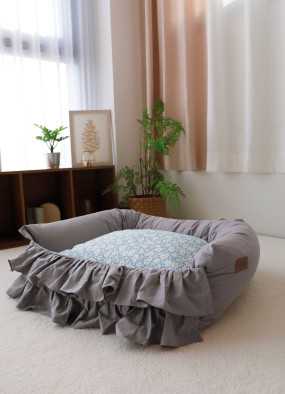 펫 가든 프릴 순면 커버분리 범퍼형 애견방석 침대 L